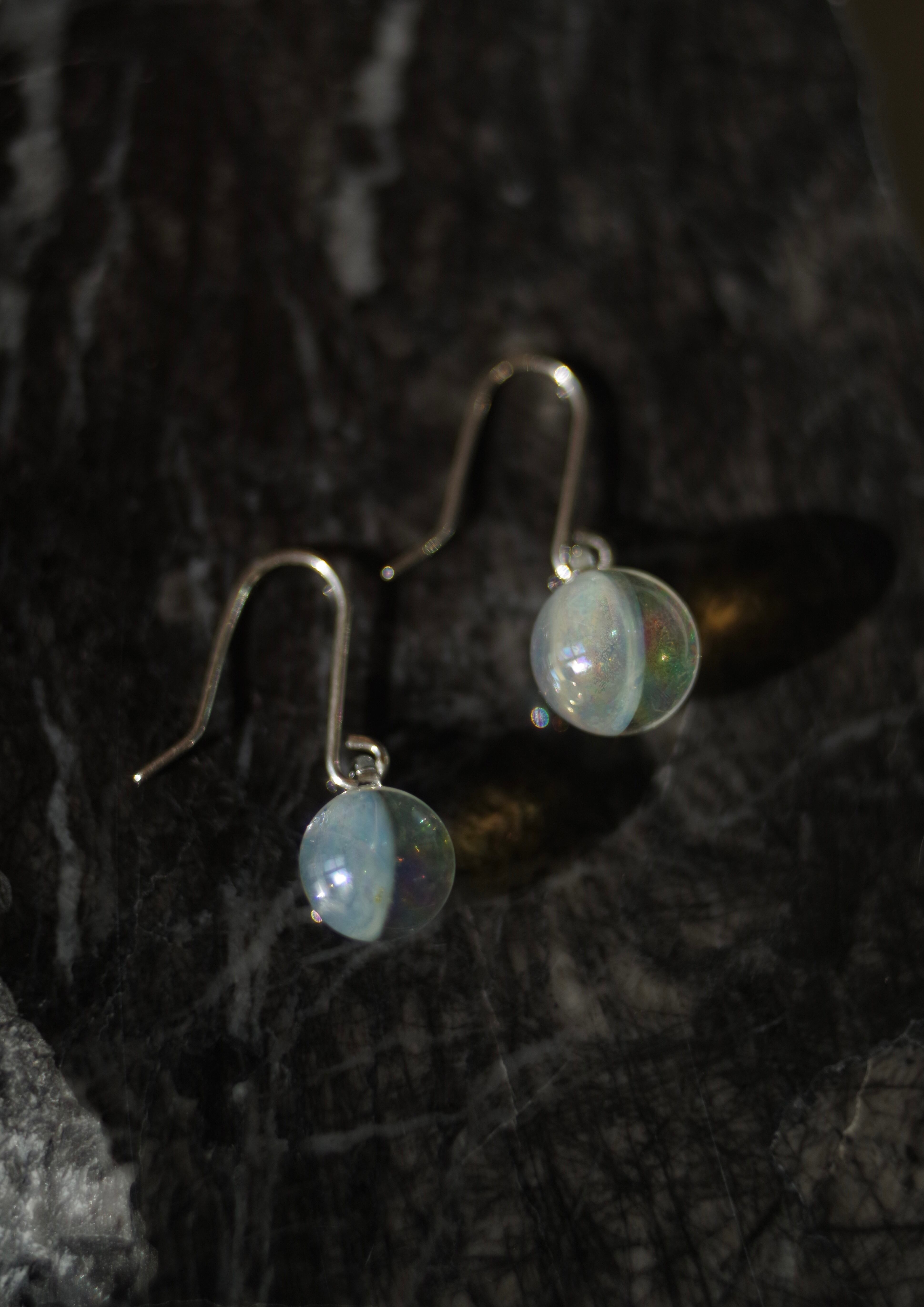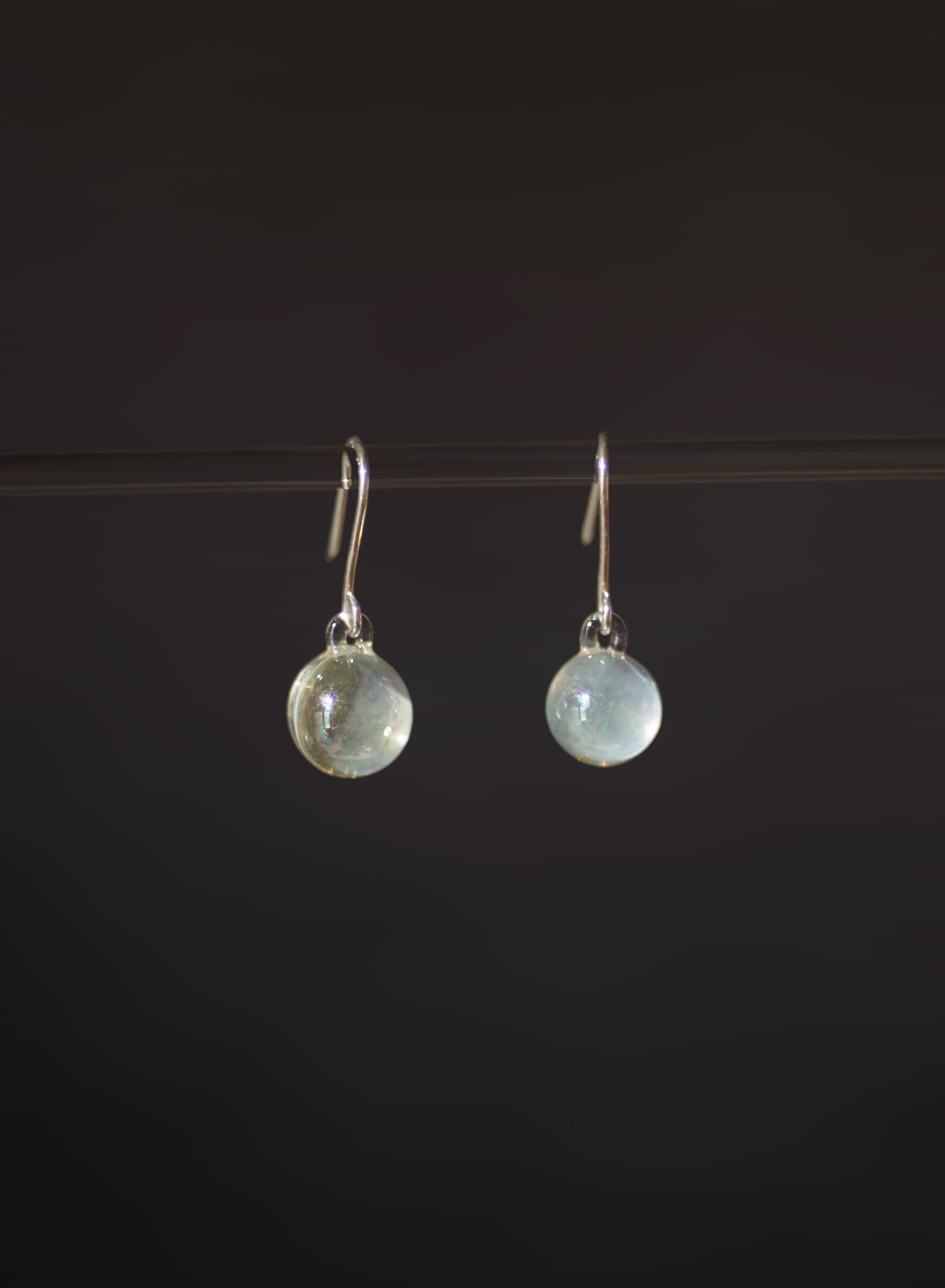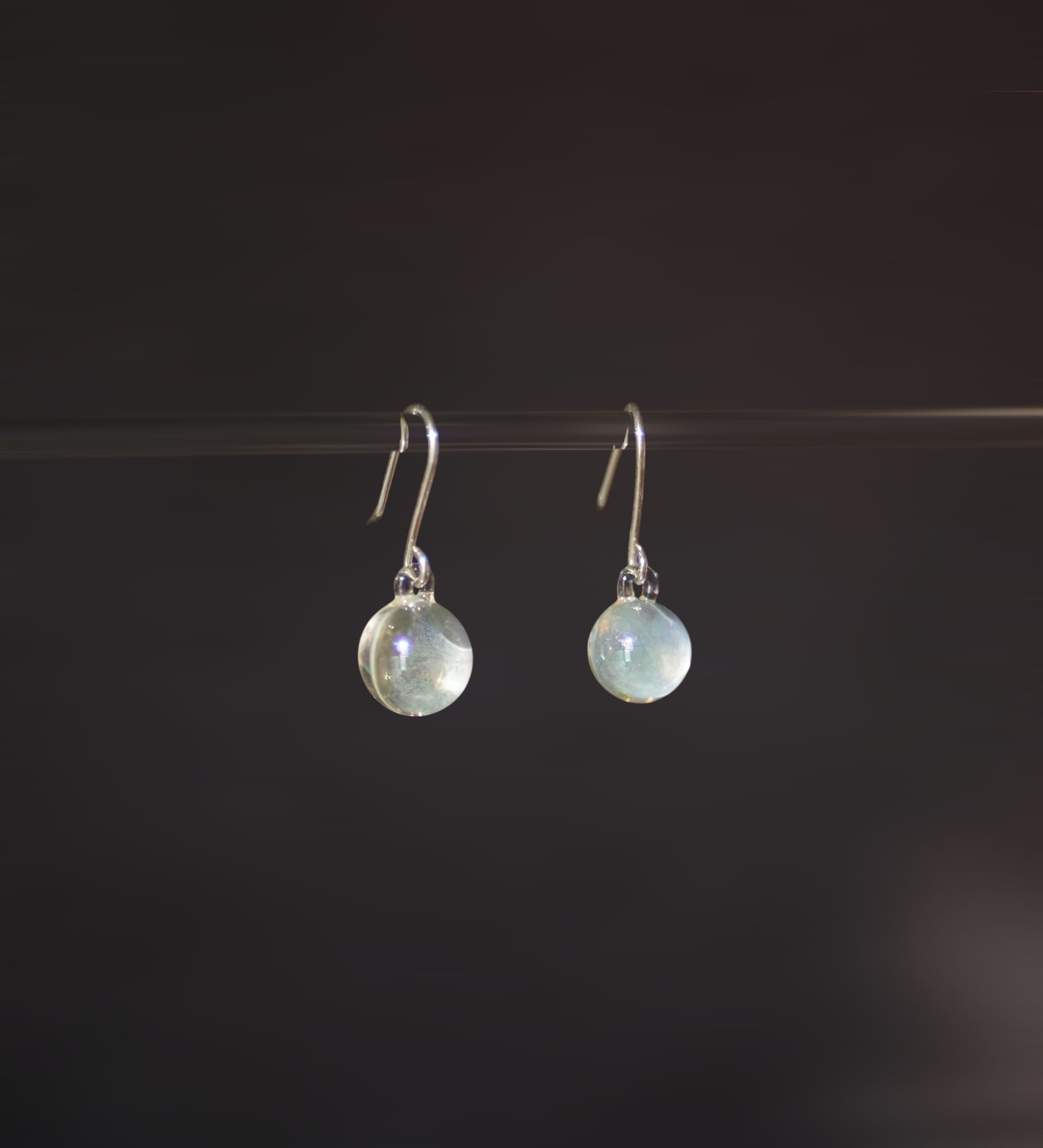 柔らかな光を放つガラスの真珠ピアス 素材 ボロシリケイトガラス ラスター彩 silver925 ガラス石の大きさ 約9mm×9mm×9mm