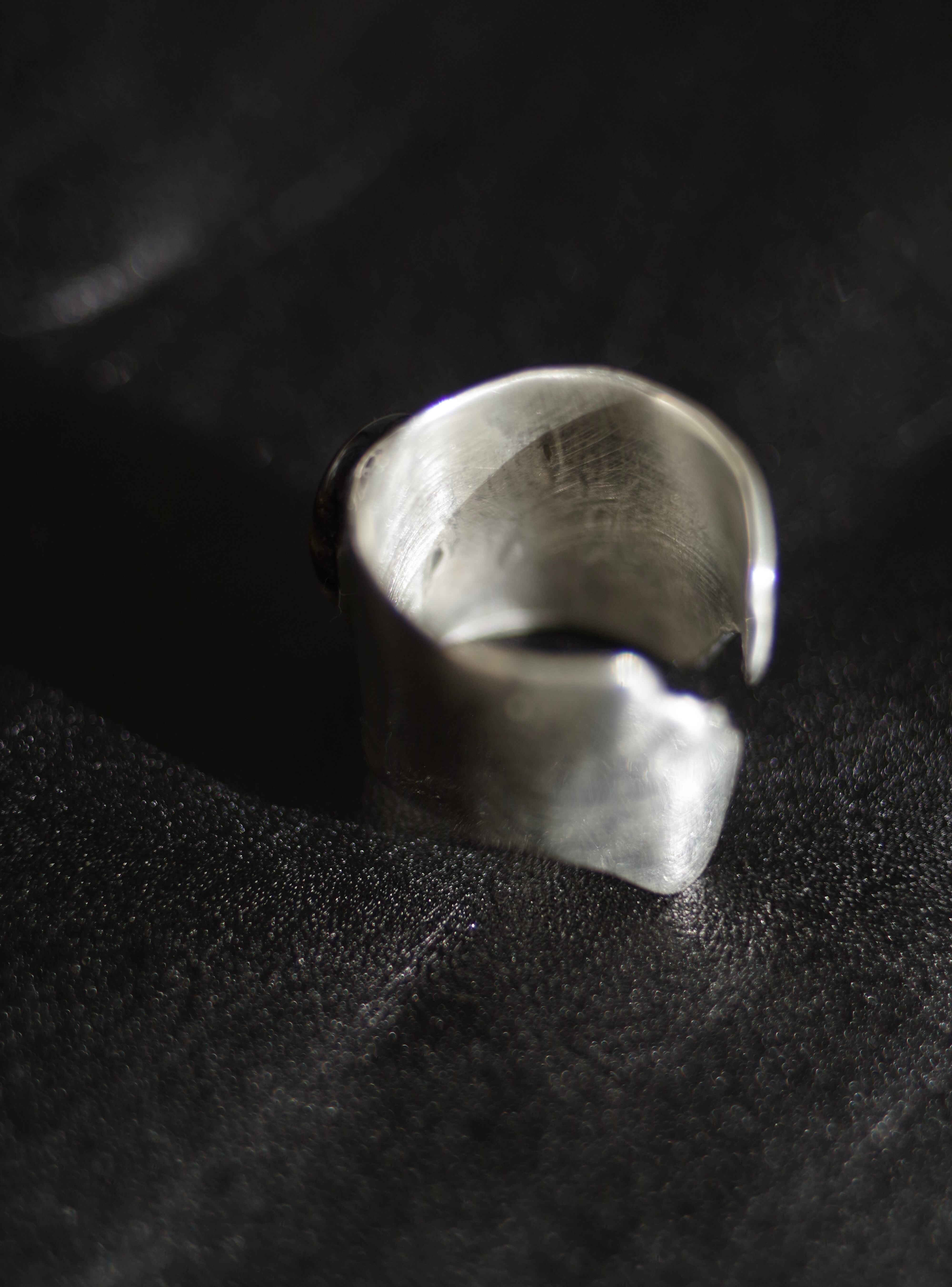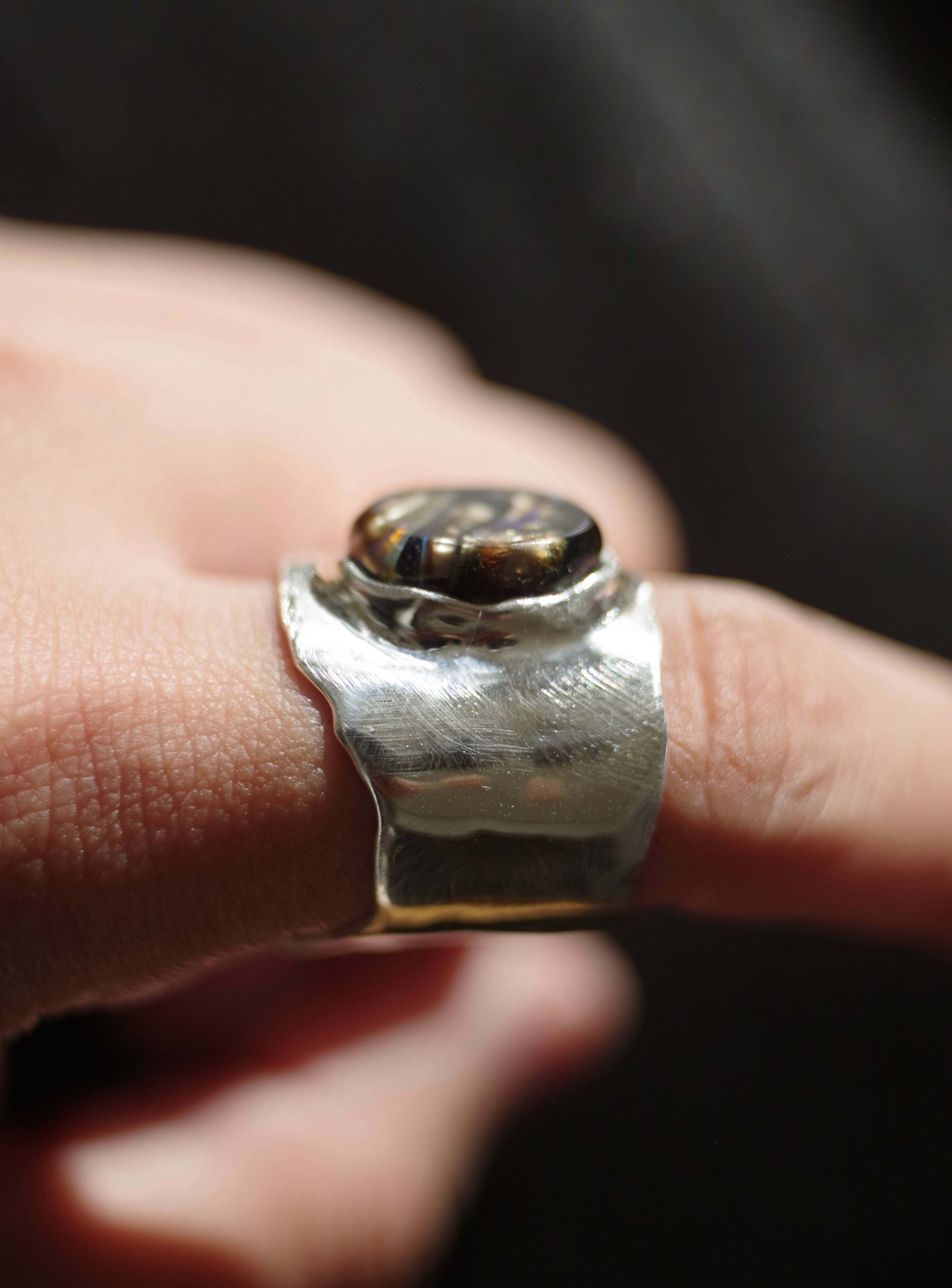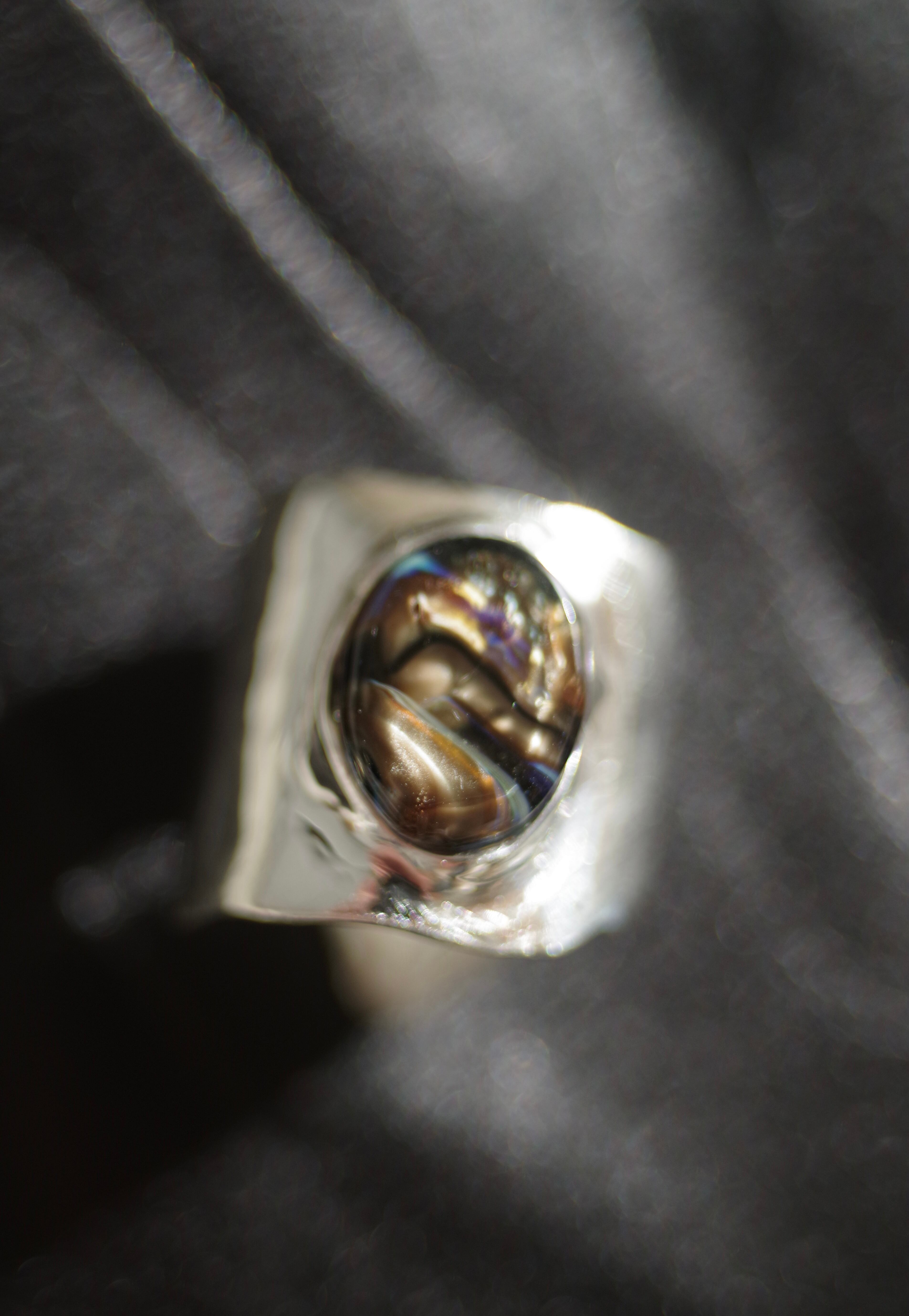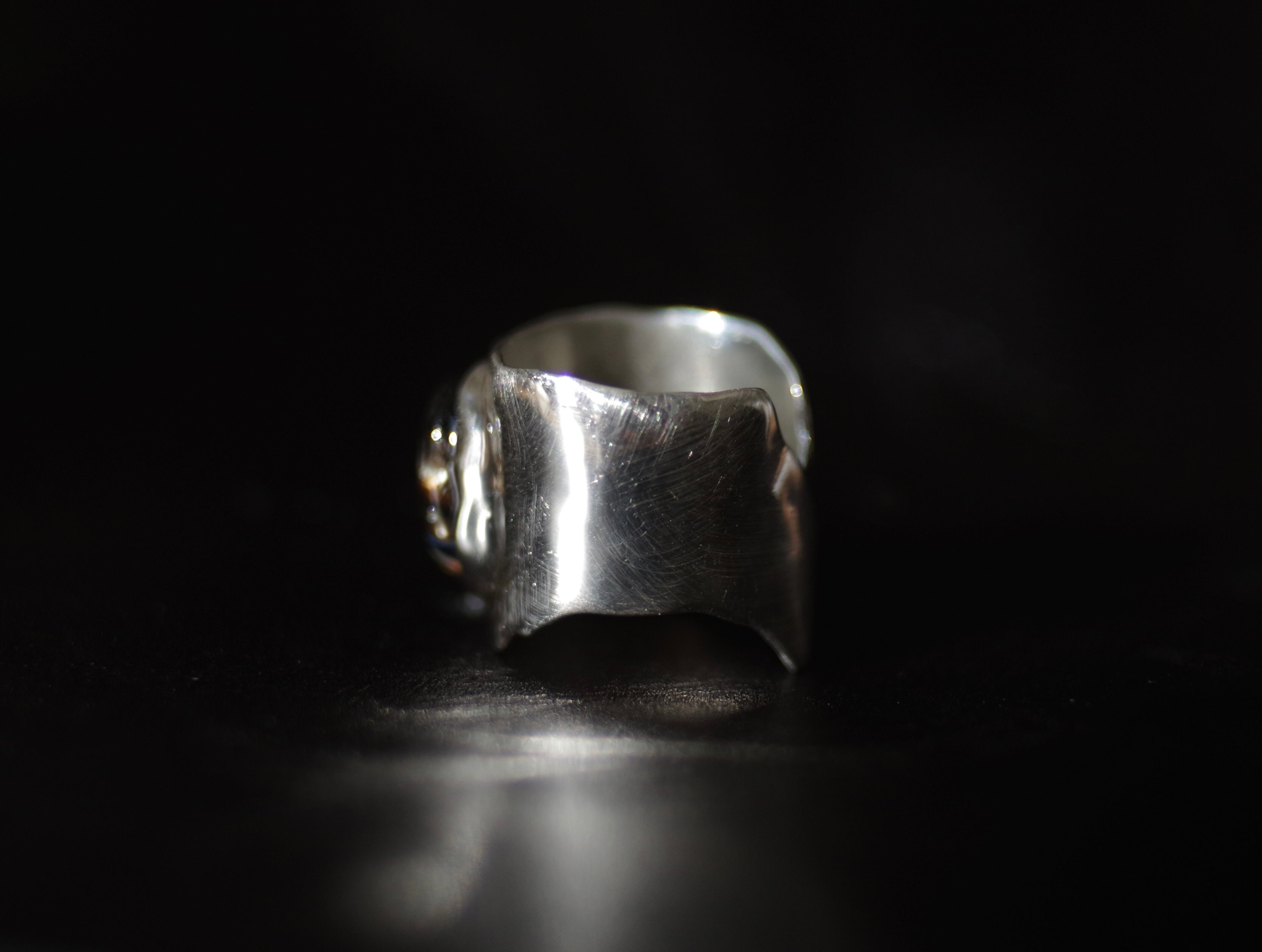 見方次第 13号〜フリーサイズ(こちらで大きくすることは可能です、ご注文の際に希望のサイズをお知らせください) 素材 ボロシリケイトガラス silver925 ガラス石の大きさ 約12mm×10mm×2mm リング幅 約18mm