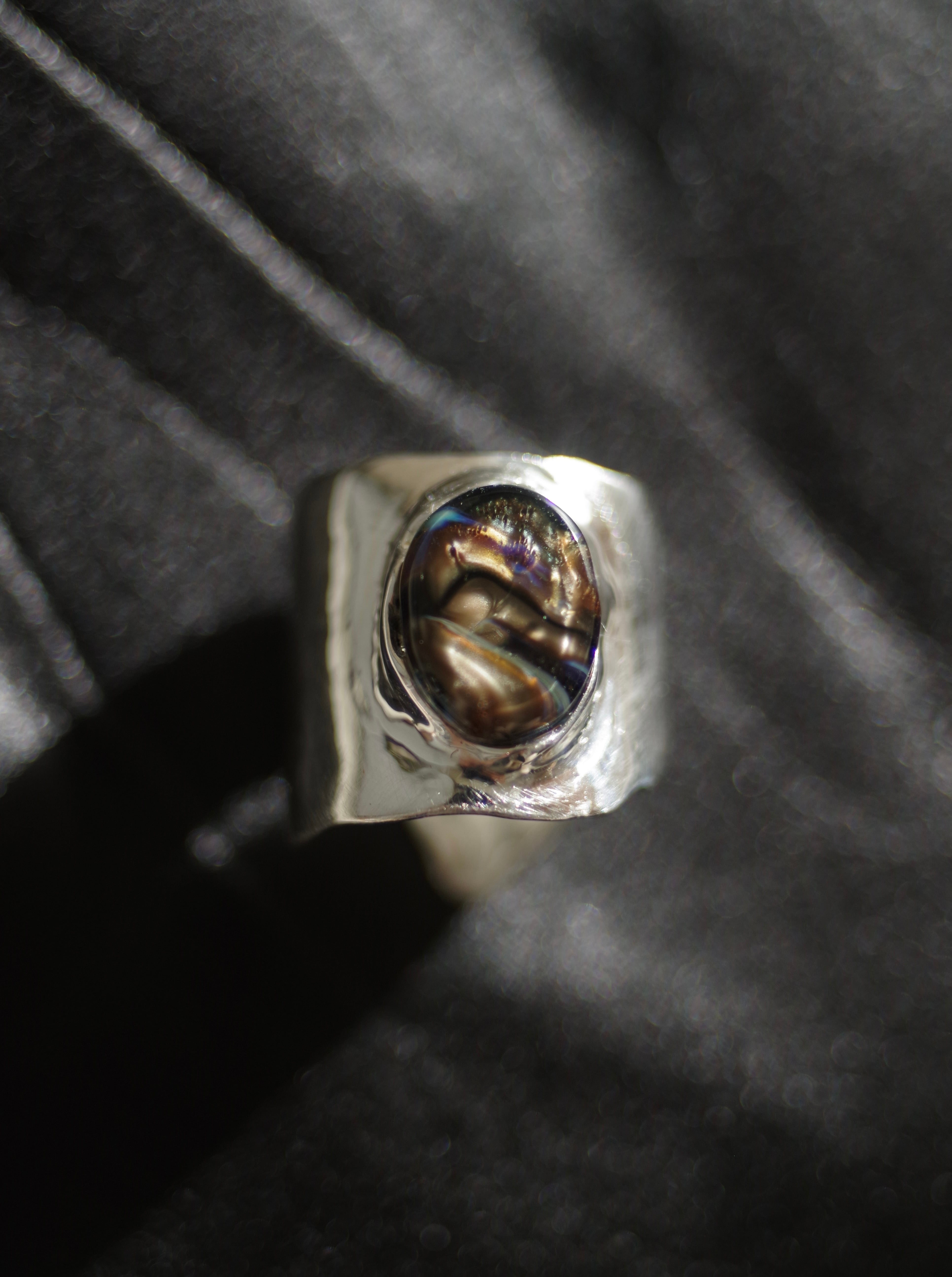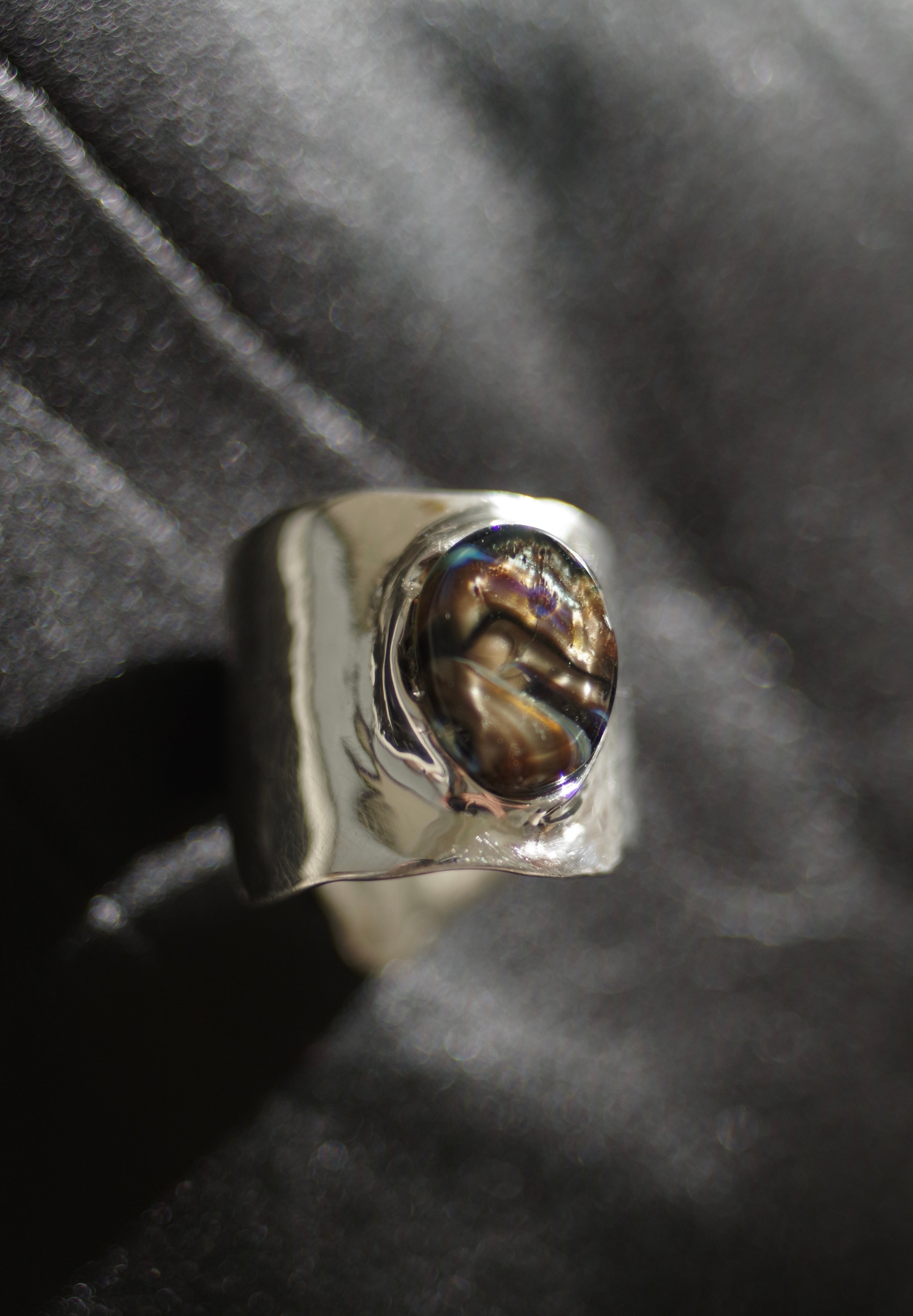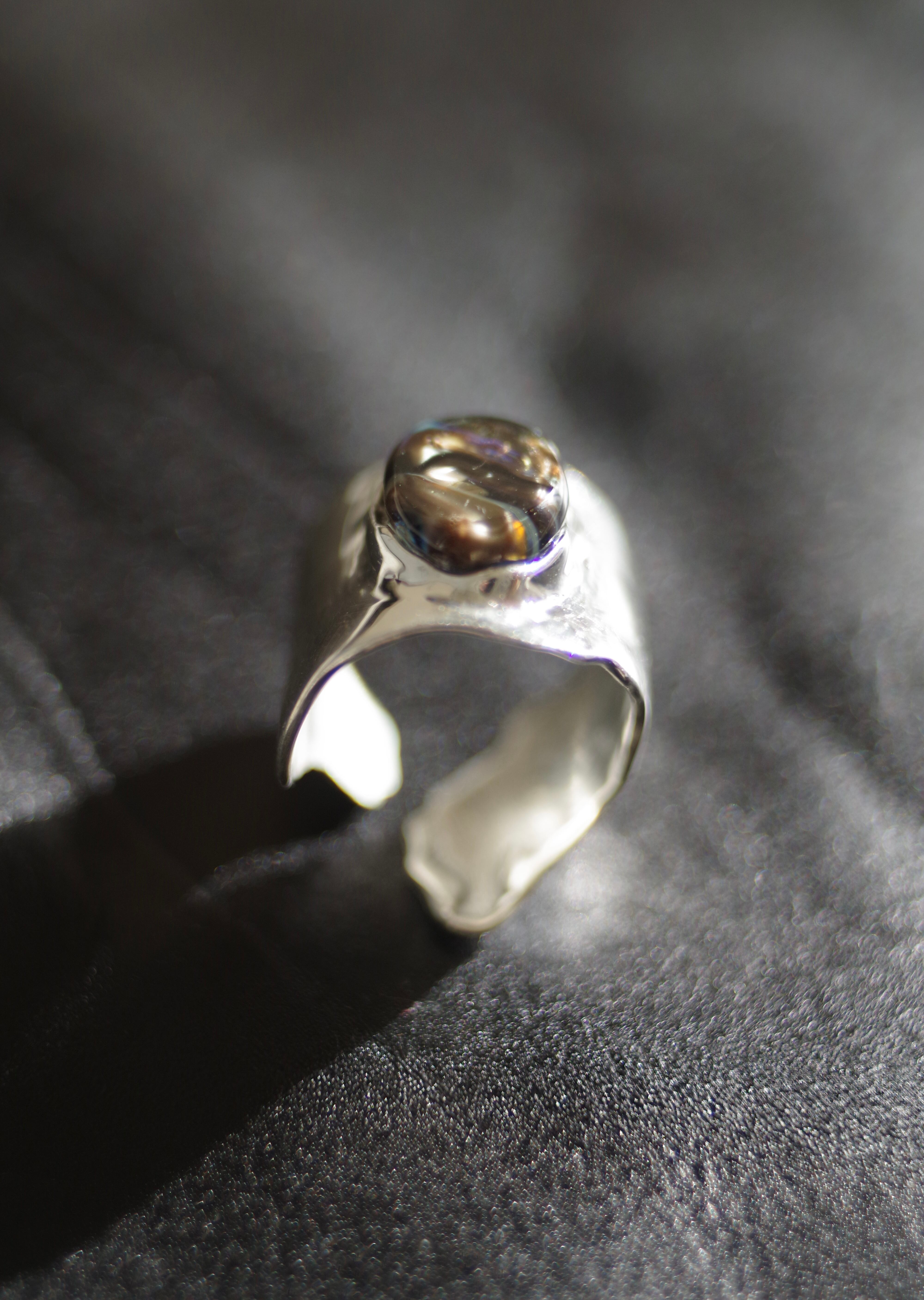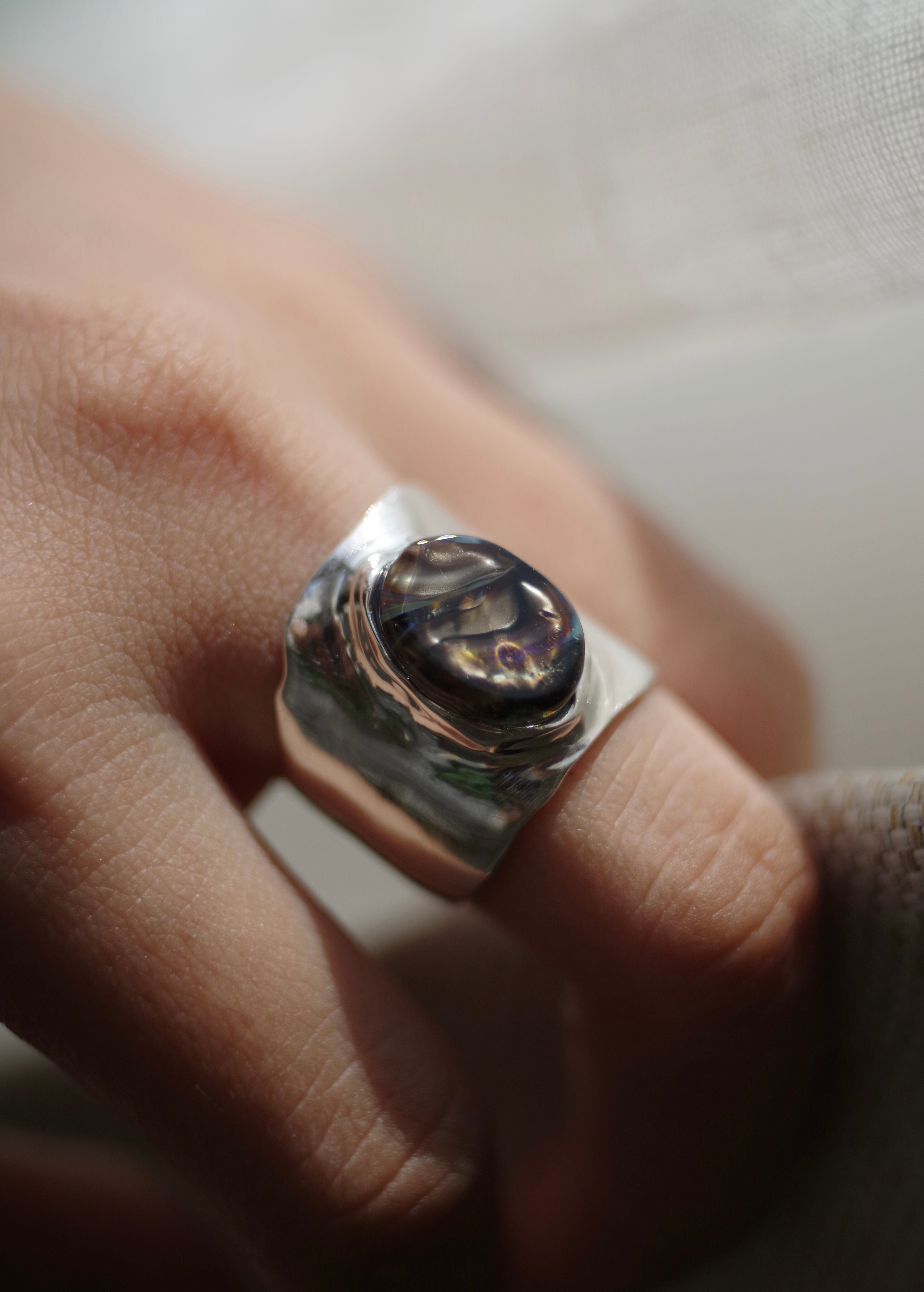 見方次第 13号〜フリーサイズ(こちらで大きくすることは可能です、ご注文の際に希望のサイズをお知らせください) 素材 ボロシリケイトガラス silver925 ガラス石の大きさ 約12mm×10mm×2mm リング幅 約18mm