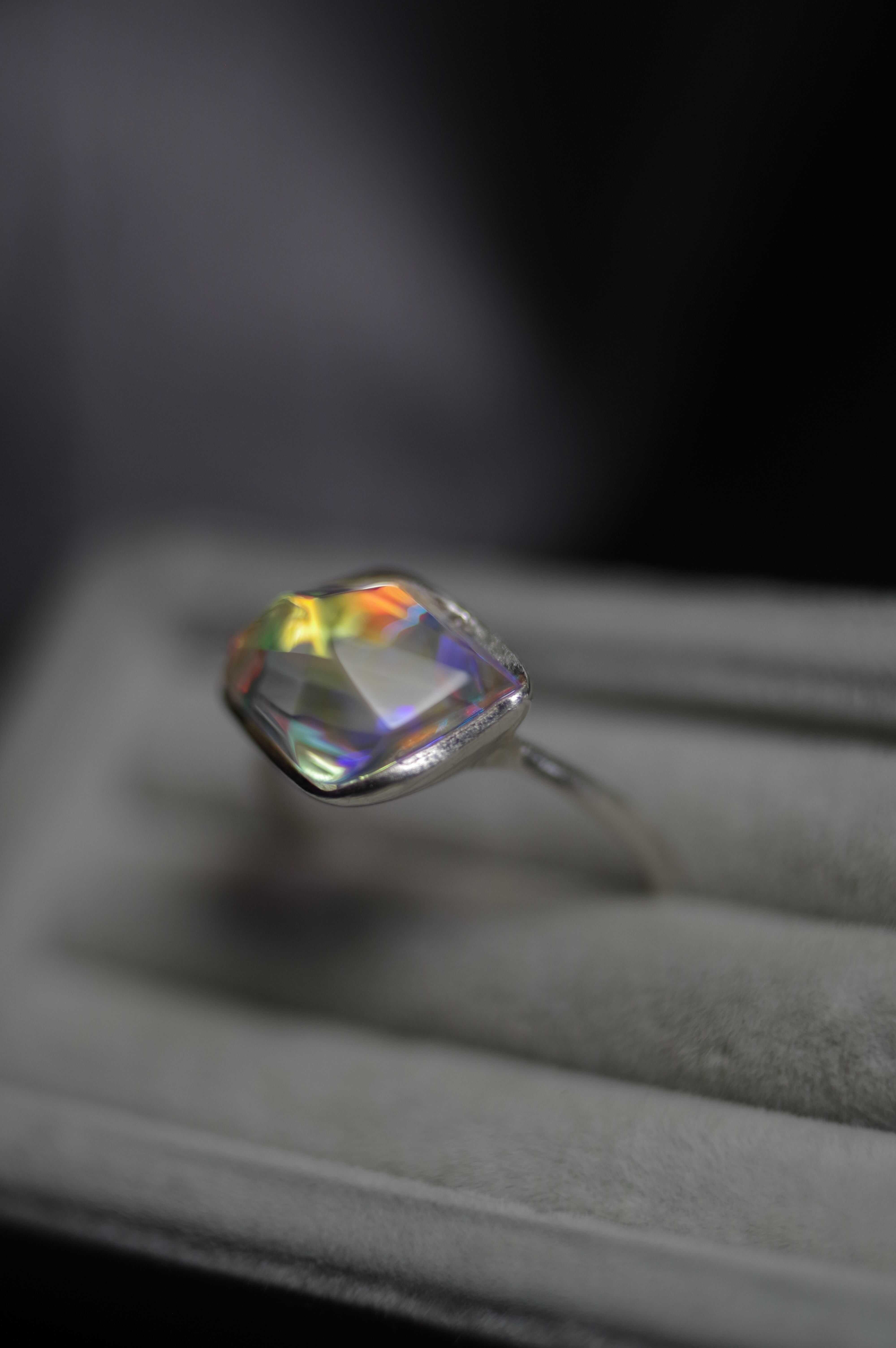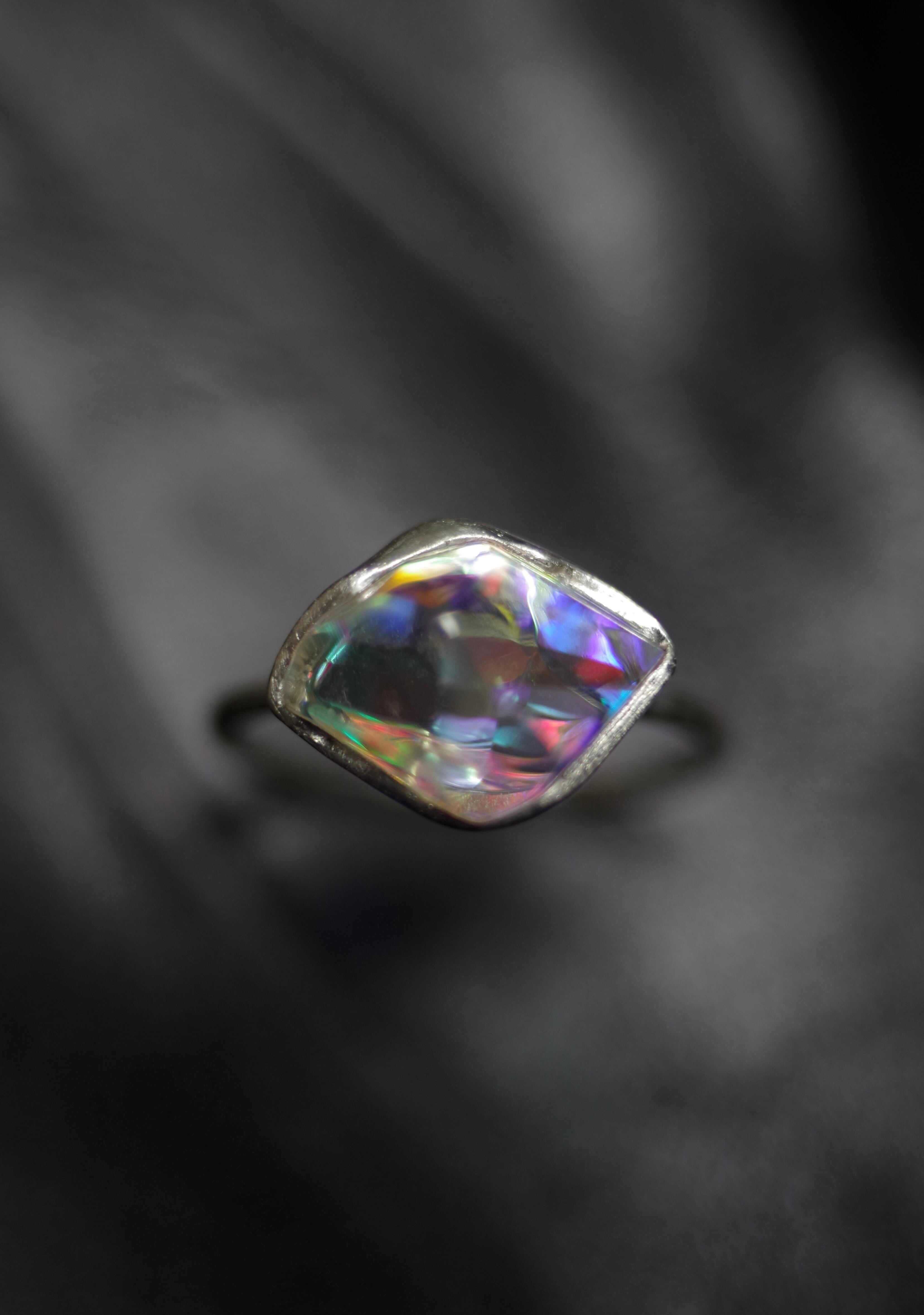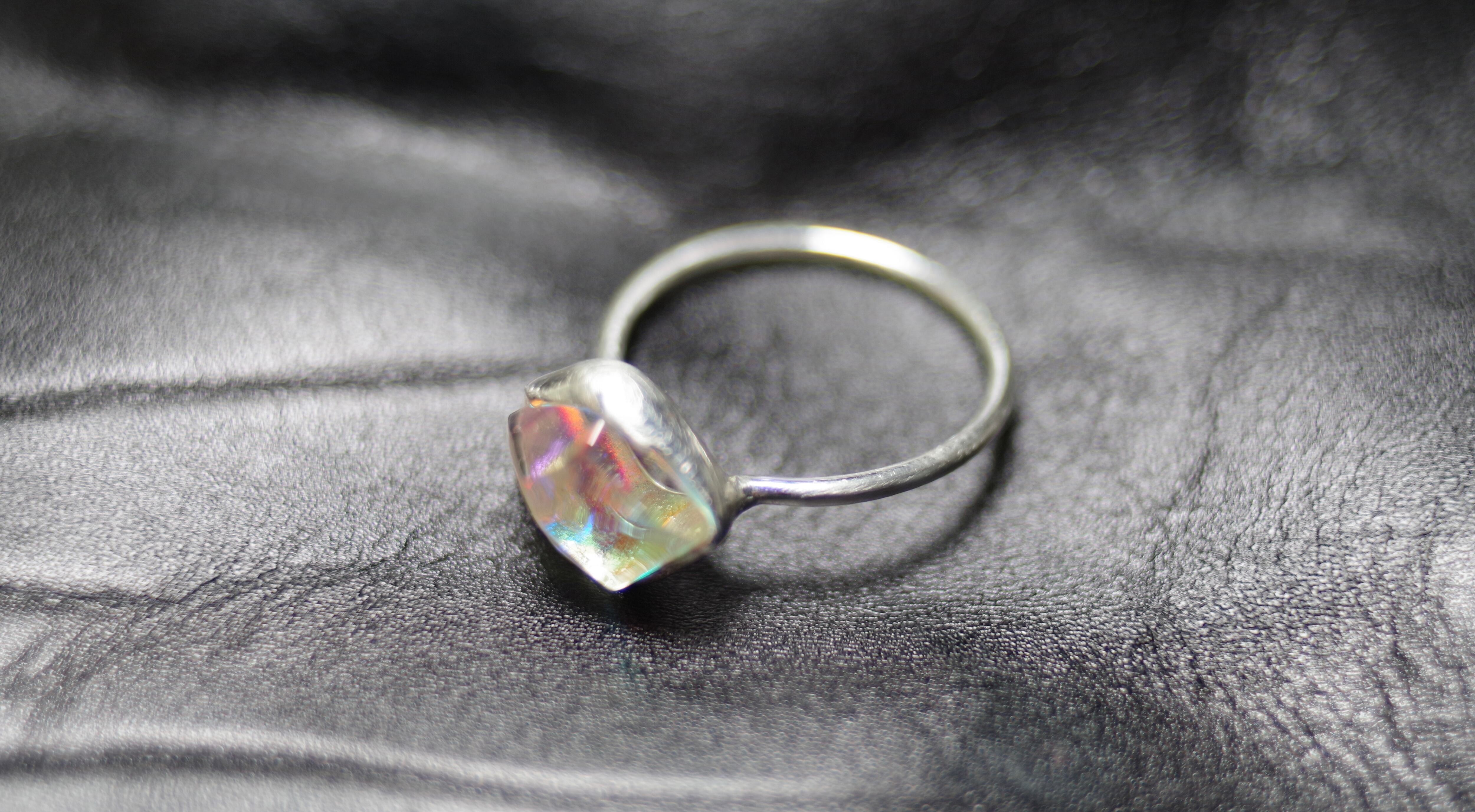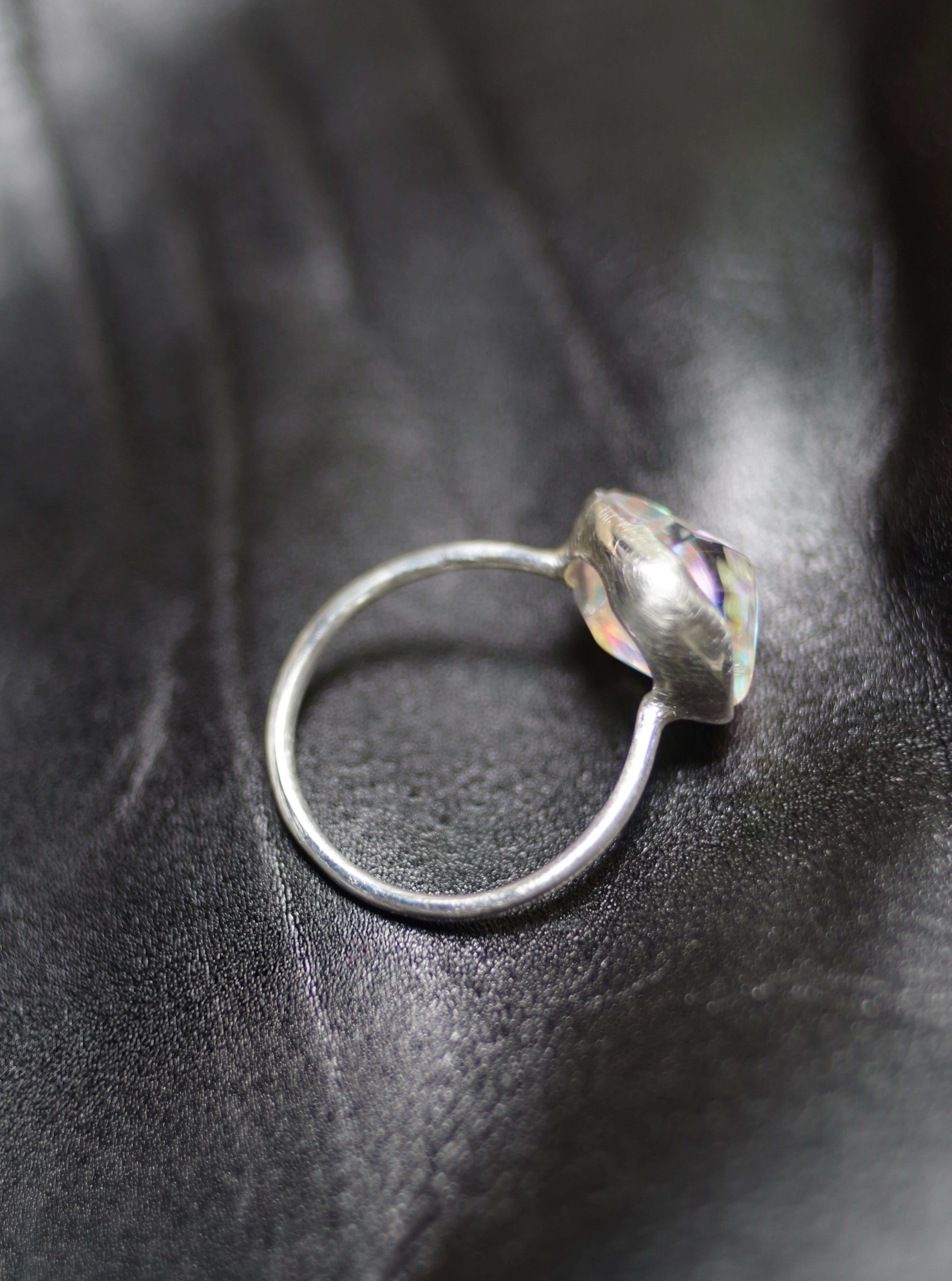 全てを見通す透明な瞳 14号(ご希望のサイズをお知らせください) 素材 ダイクロガラス silver925 ガラス石の大きさ 約9mm×13mm×8mm リング幅 約1.3mm