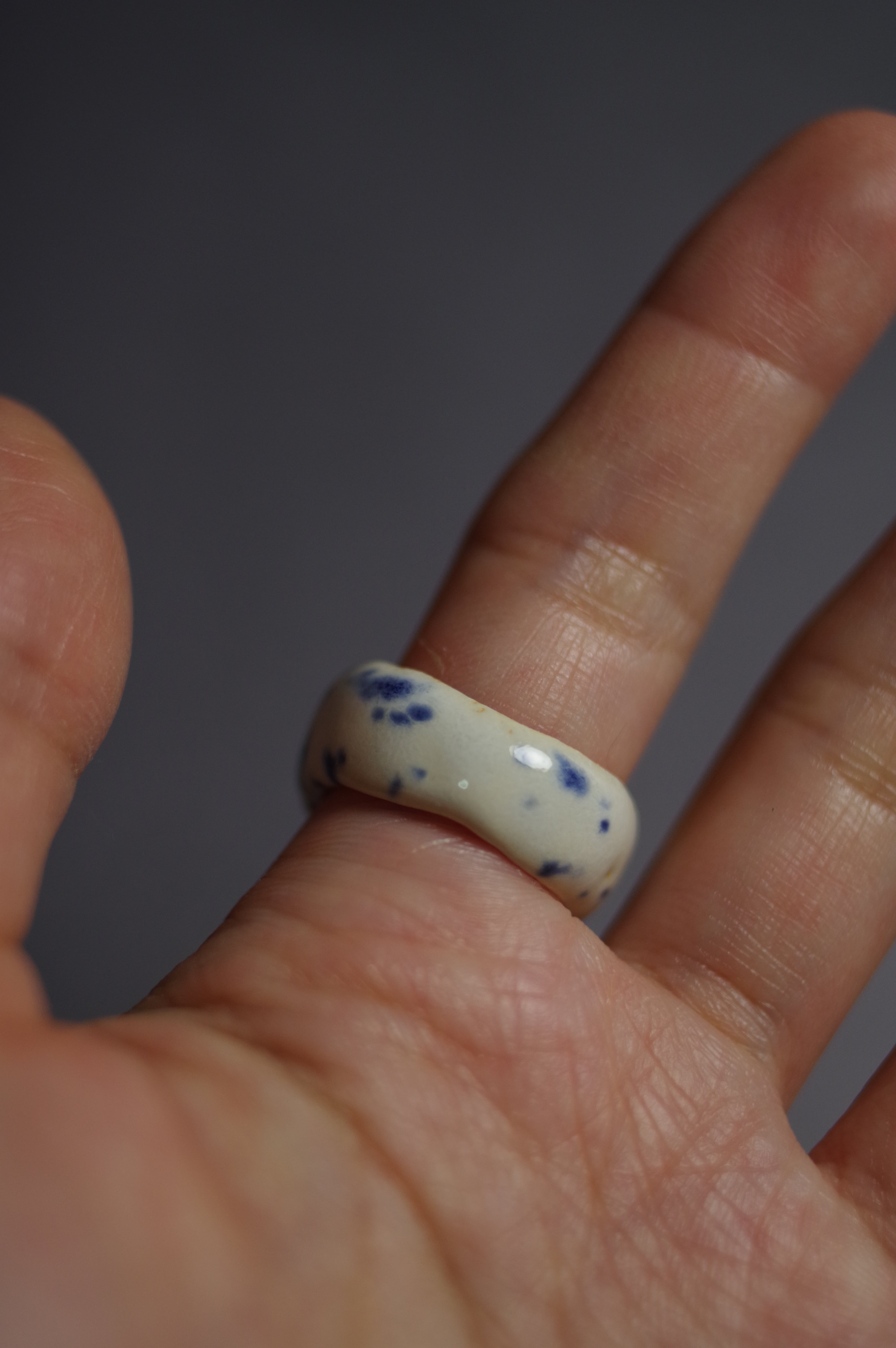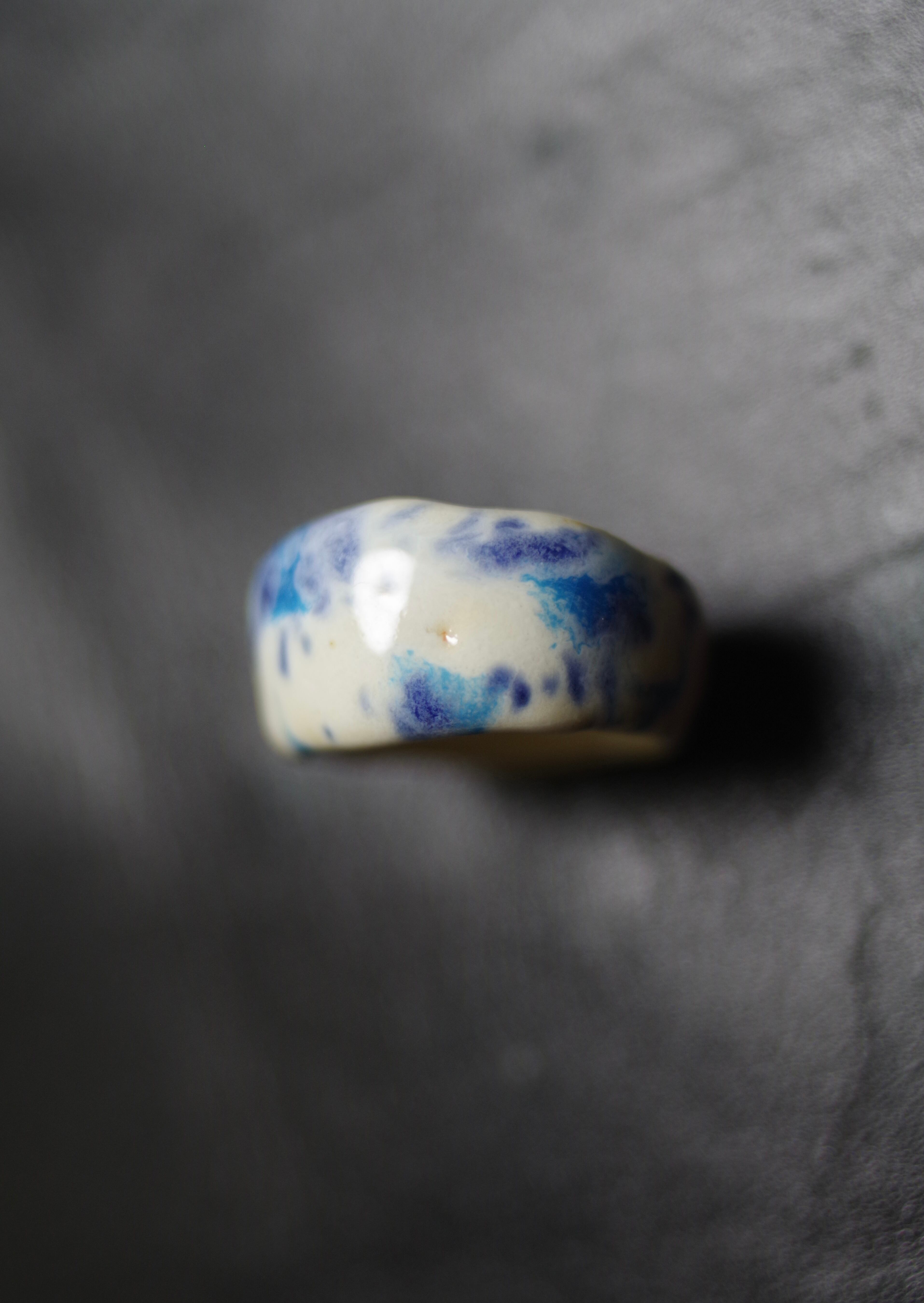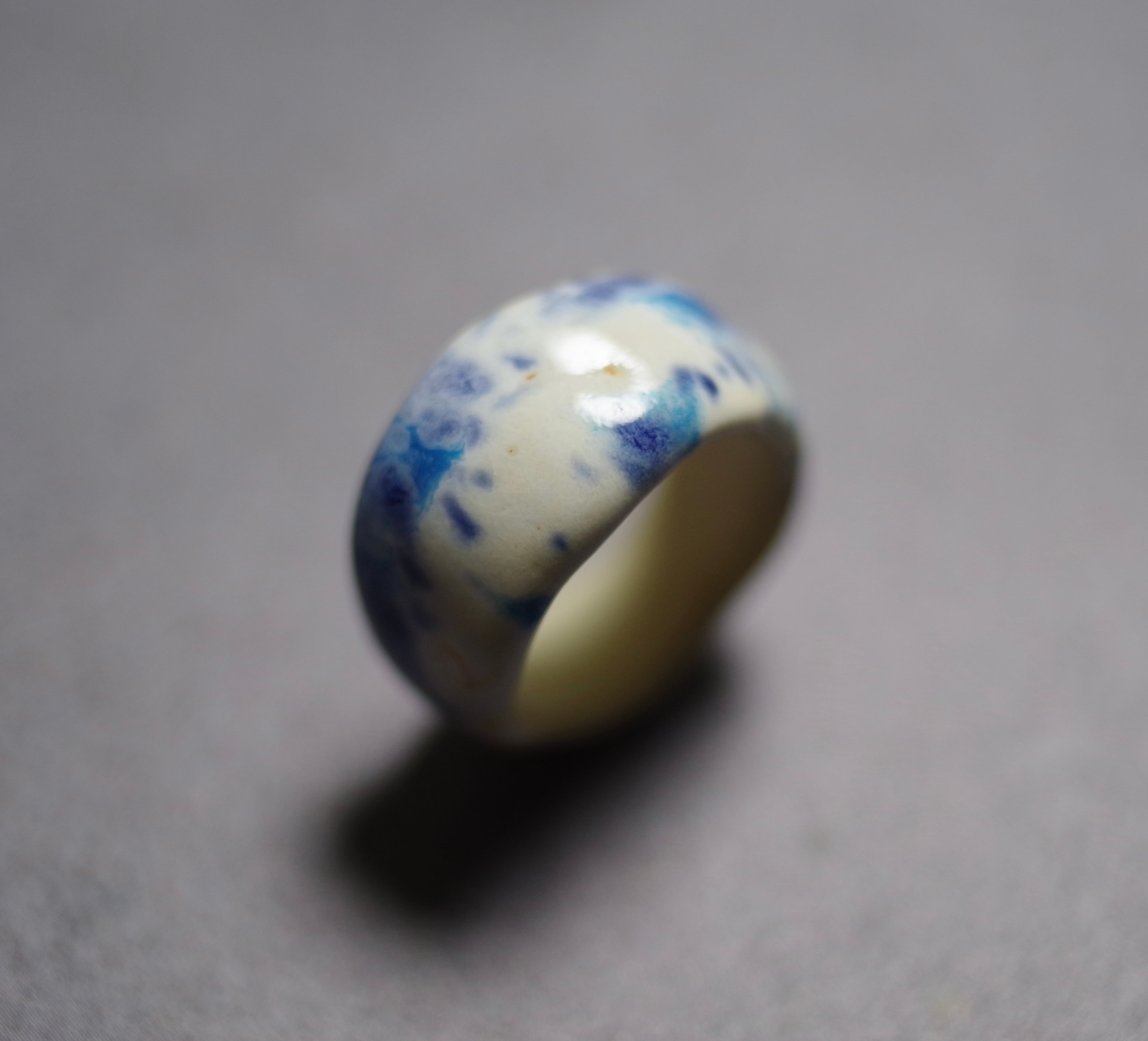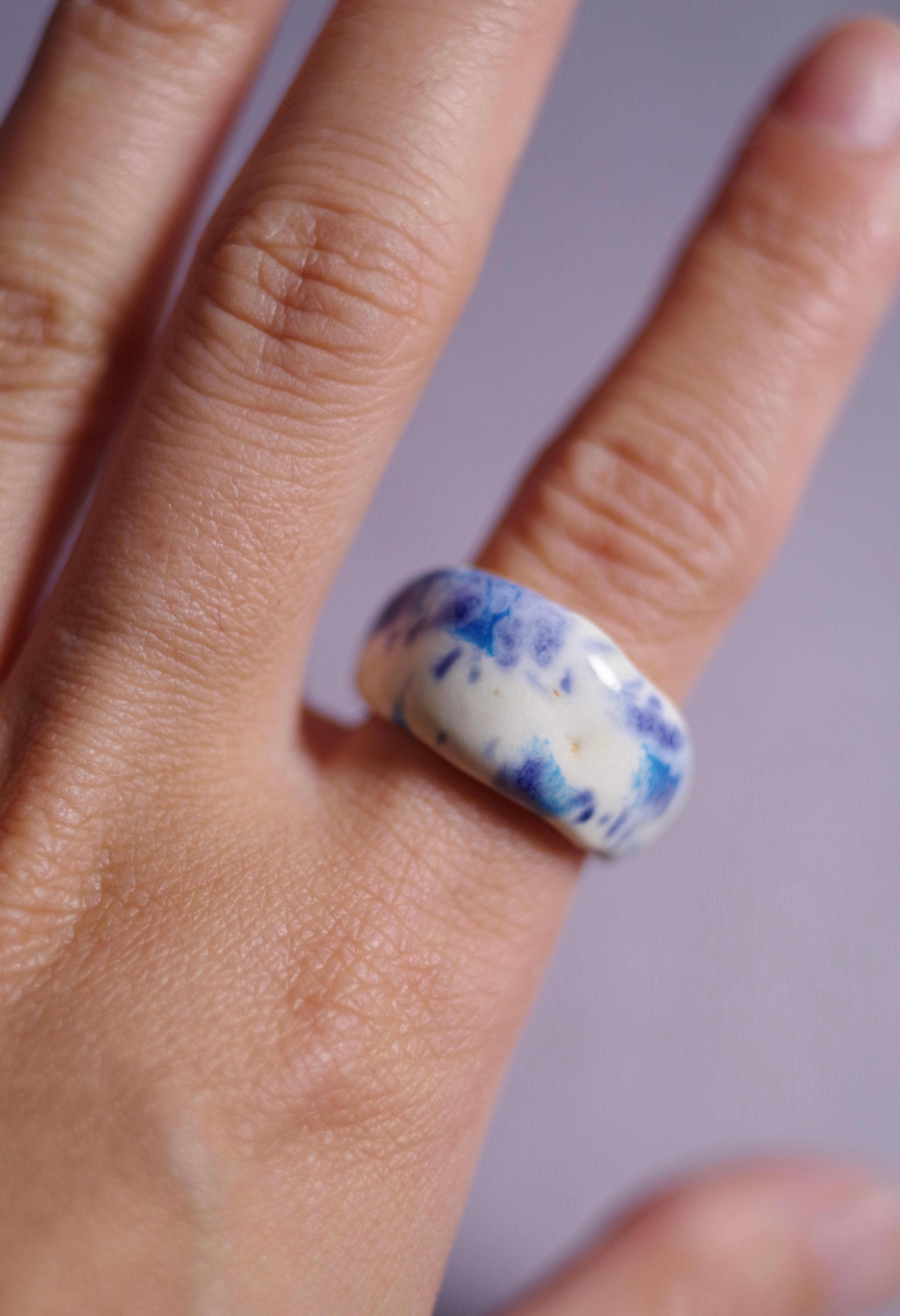 白地に咲く青い小花 10号(陶ジュエリーは普段つけているサイズより少し大きめの号数をおすすめします)