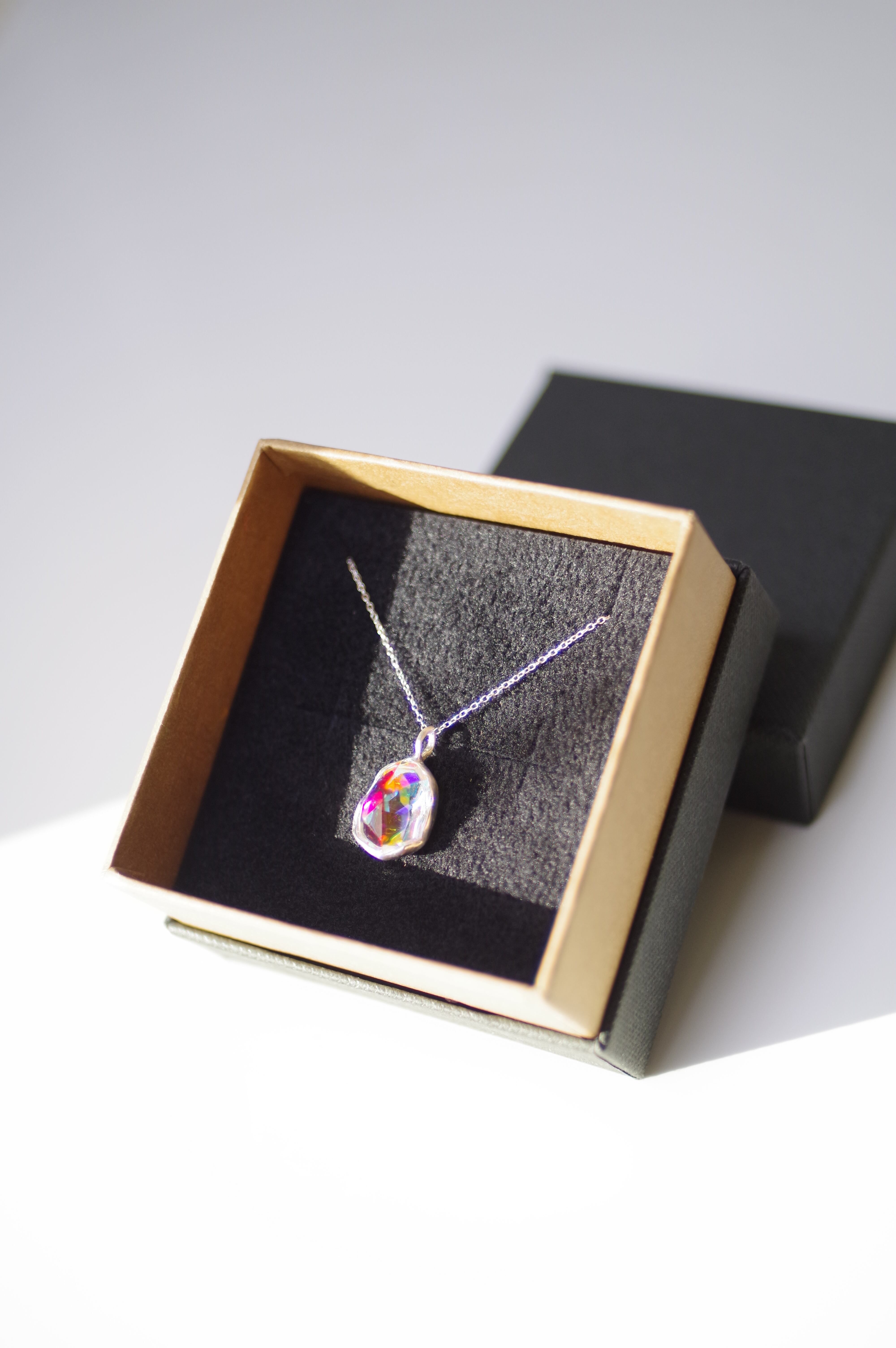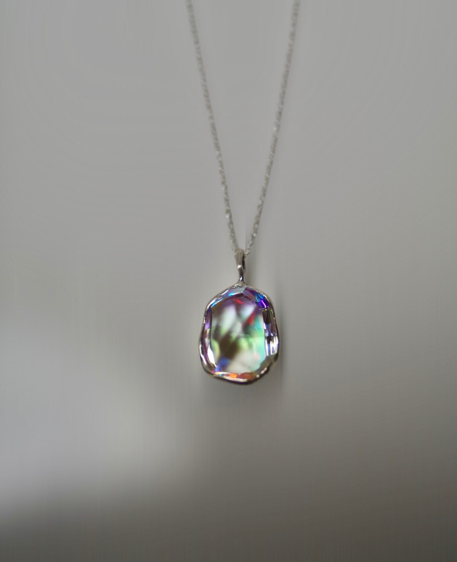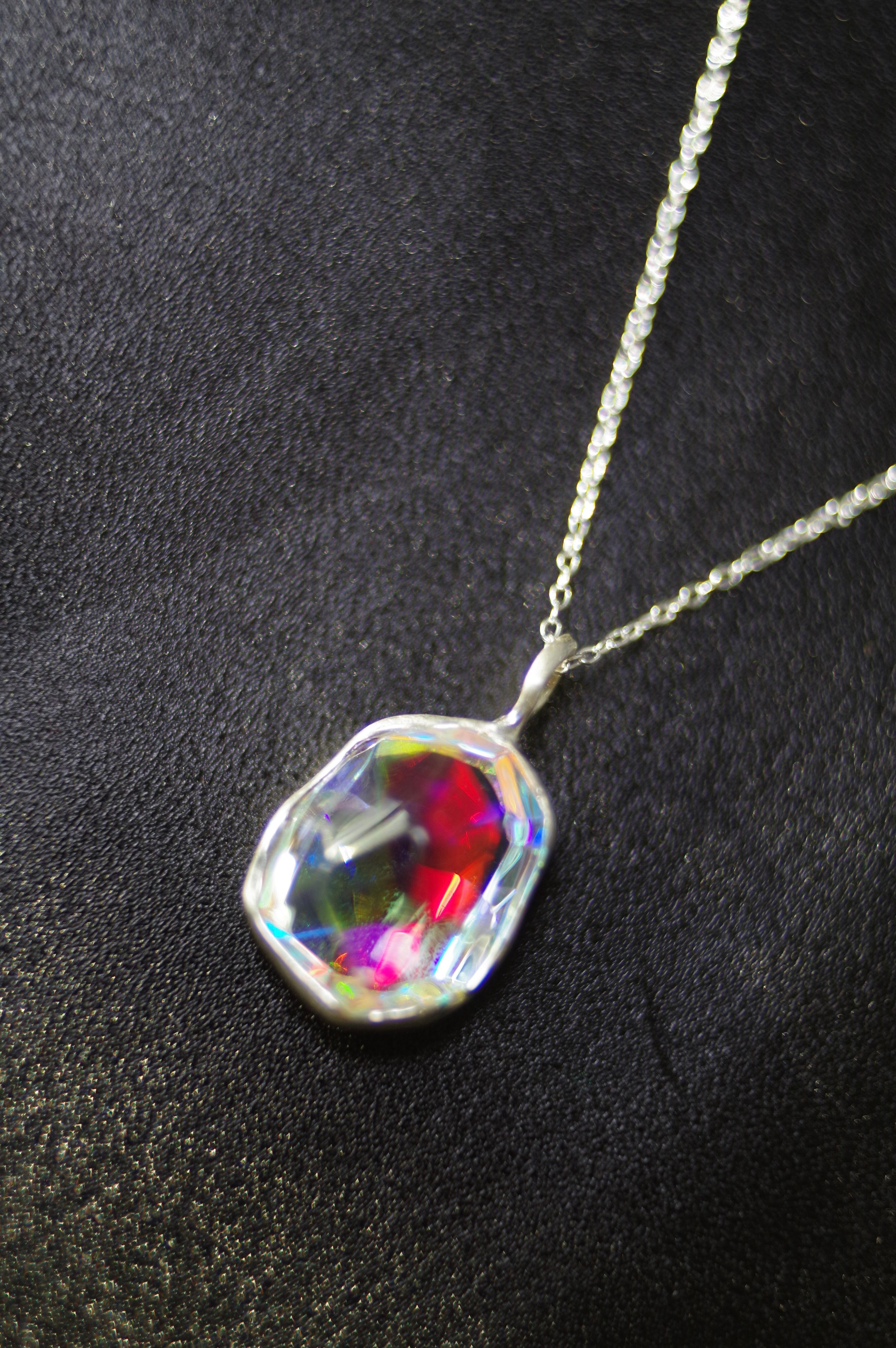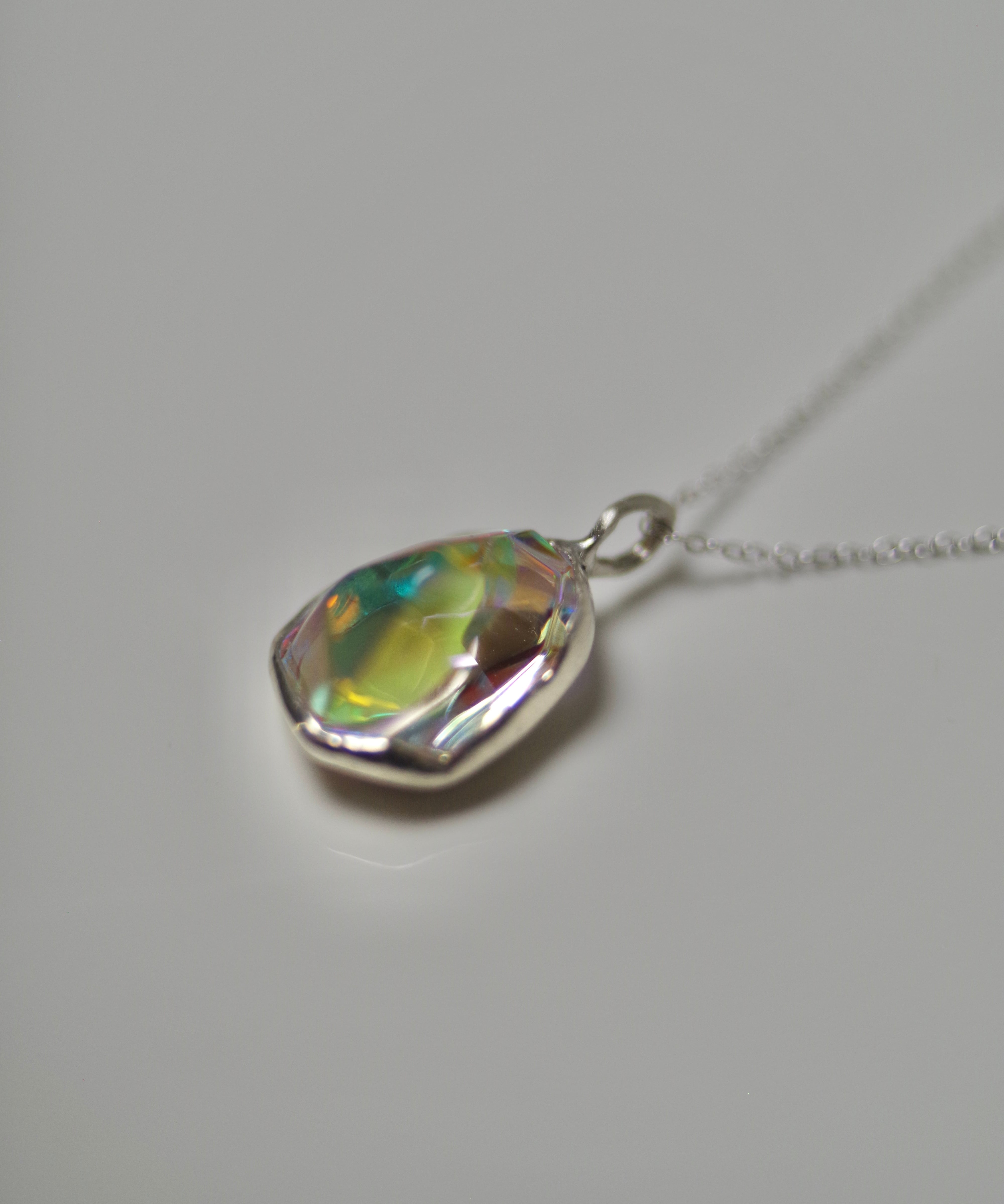 歪で魅力的な唯一無二のこの形 素材 ダイクロガラス silver925 ガラス石の大きさ 約12mm×9mm×7mm チェーンの長さ 約45cm