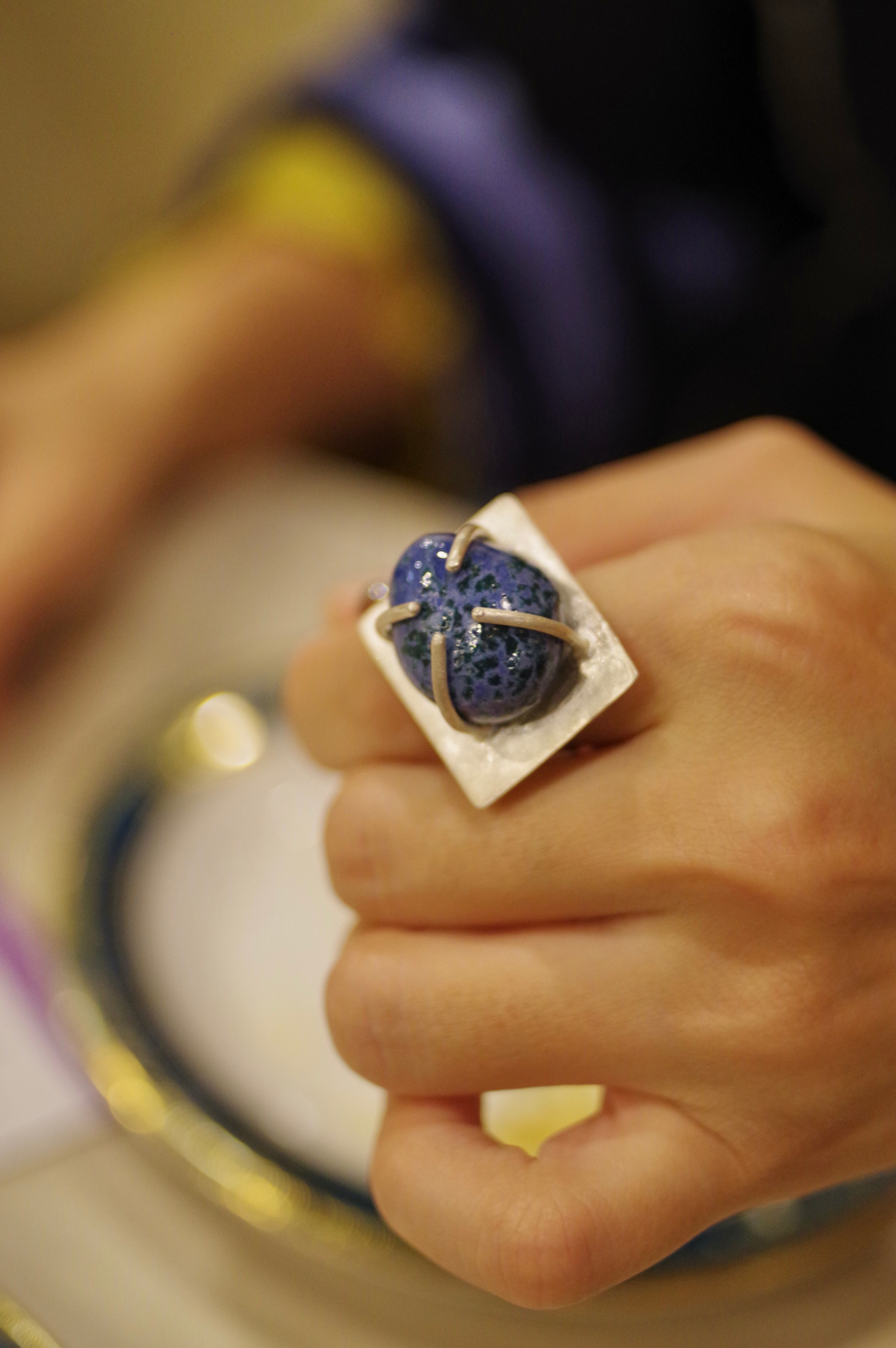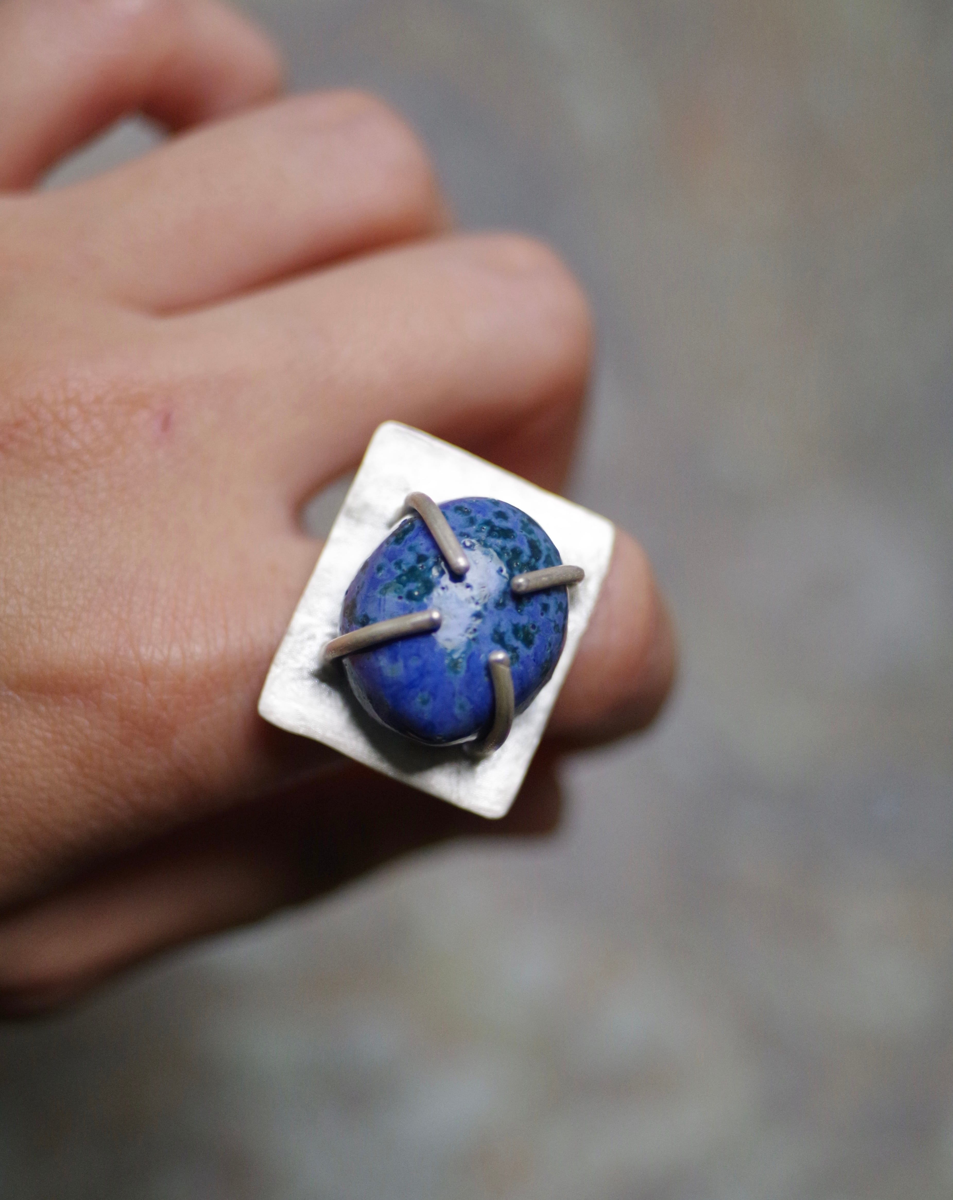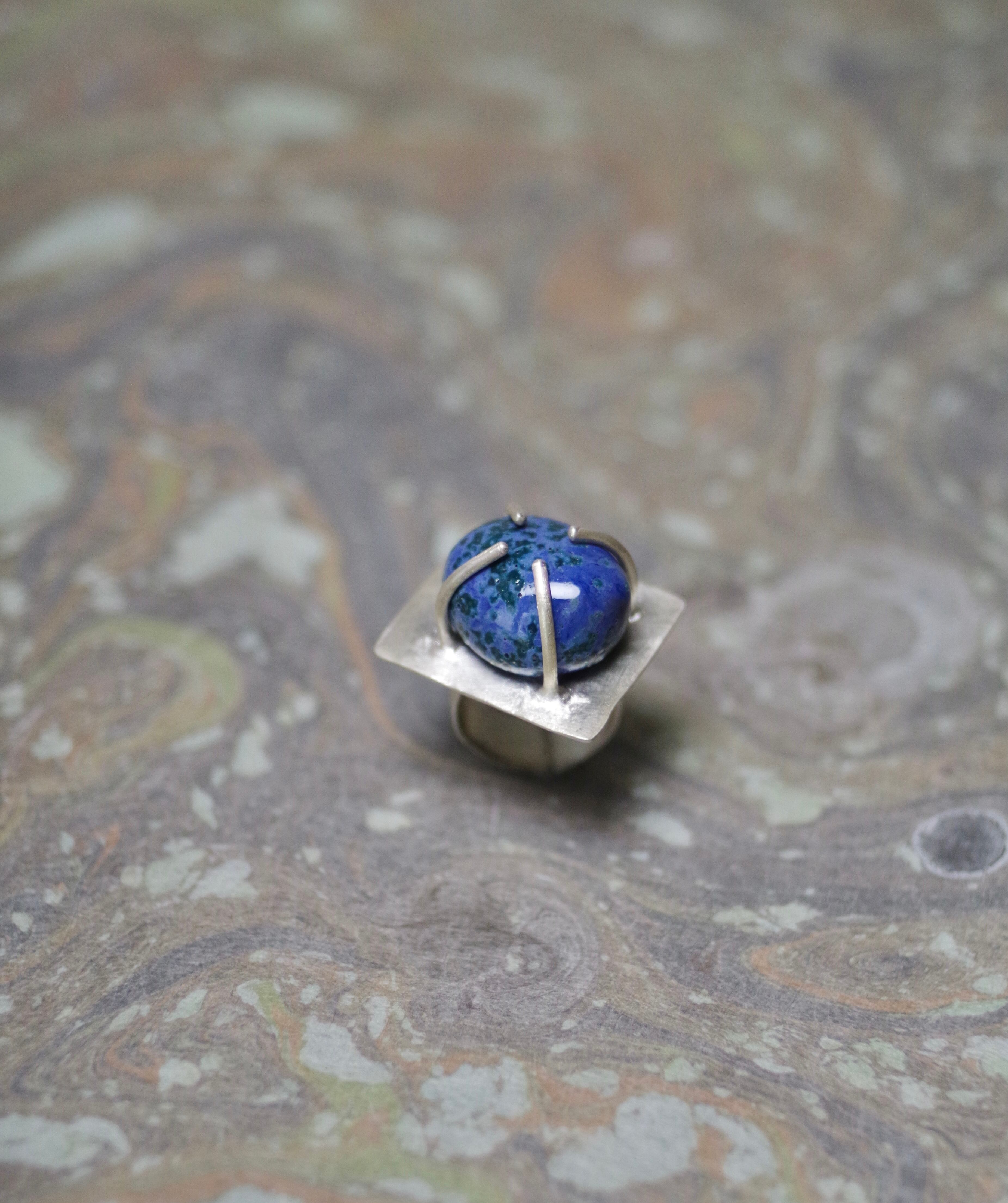 11号〜フリーサイズ(こちらで大きくすることは可能です、ご注文の際に希望のサイズをお知らせください) 素材 陶 silver925 石の大きさ 約17mm×20mm×10mm リング幅 約8mm