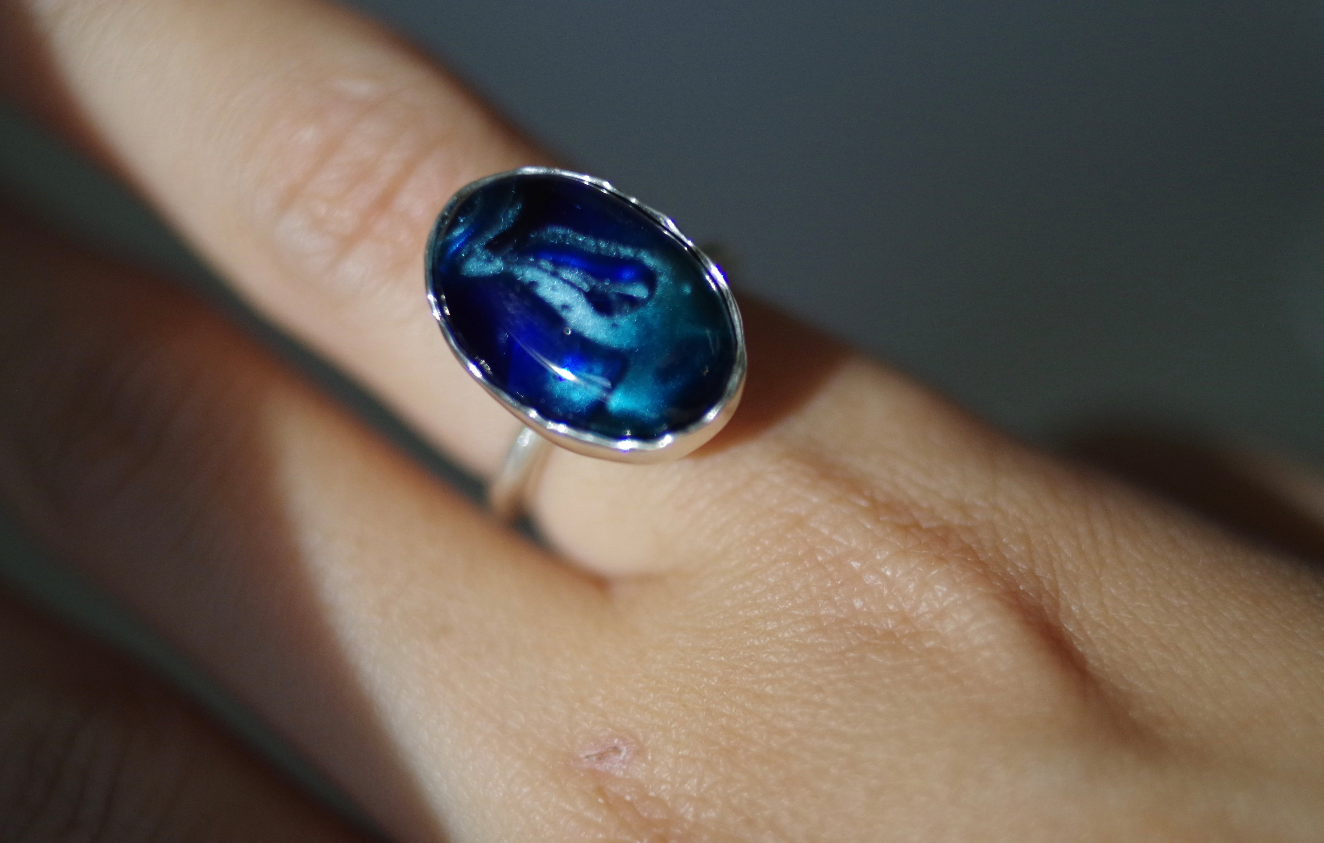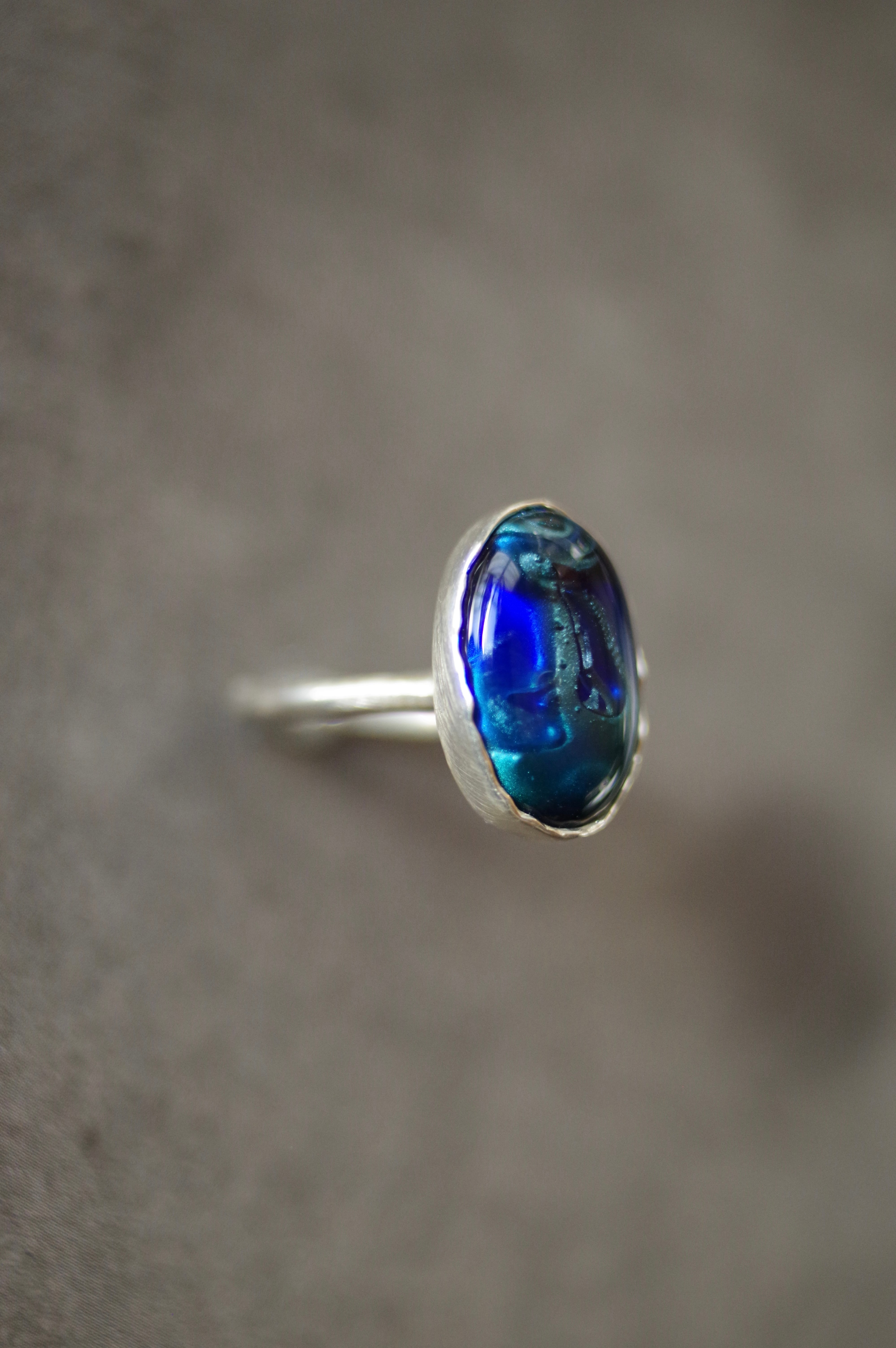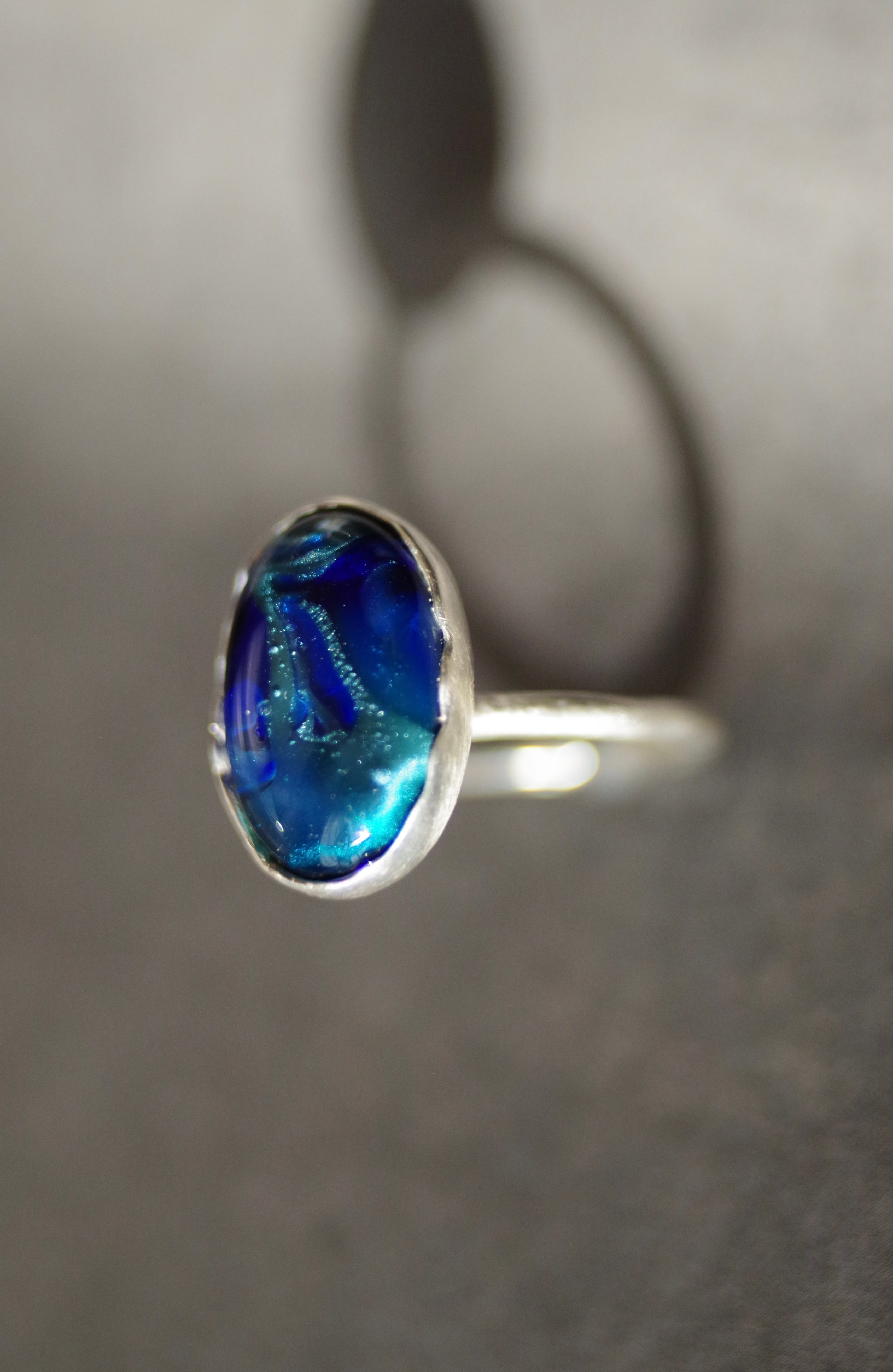 変化する前の揺らぎ 8号〜フリーサイズ(こちらで大きくすることは可能です、ご注文の際に希望のサイズをお知らせください) 素材 ボロシリケイトガラス silver925 ガラス石の大きさ 約17mm×11mm×7mm リング幅 約1.8mm