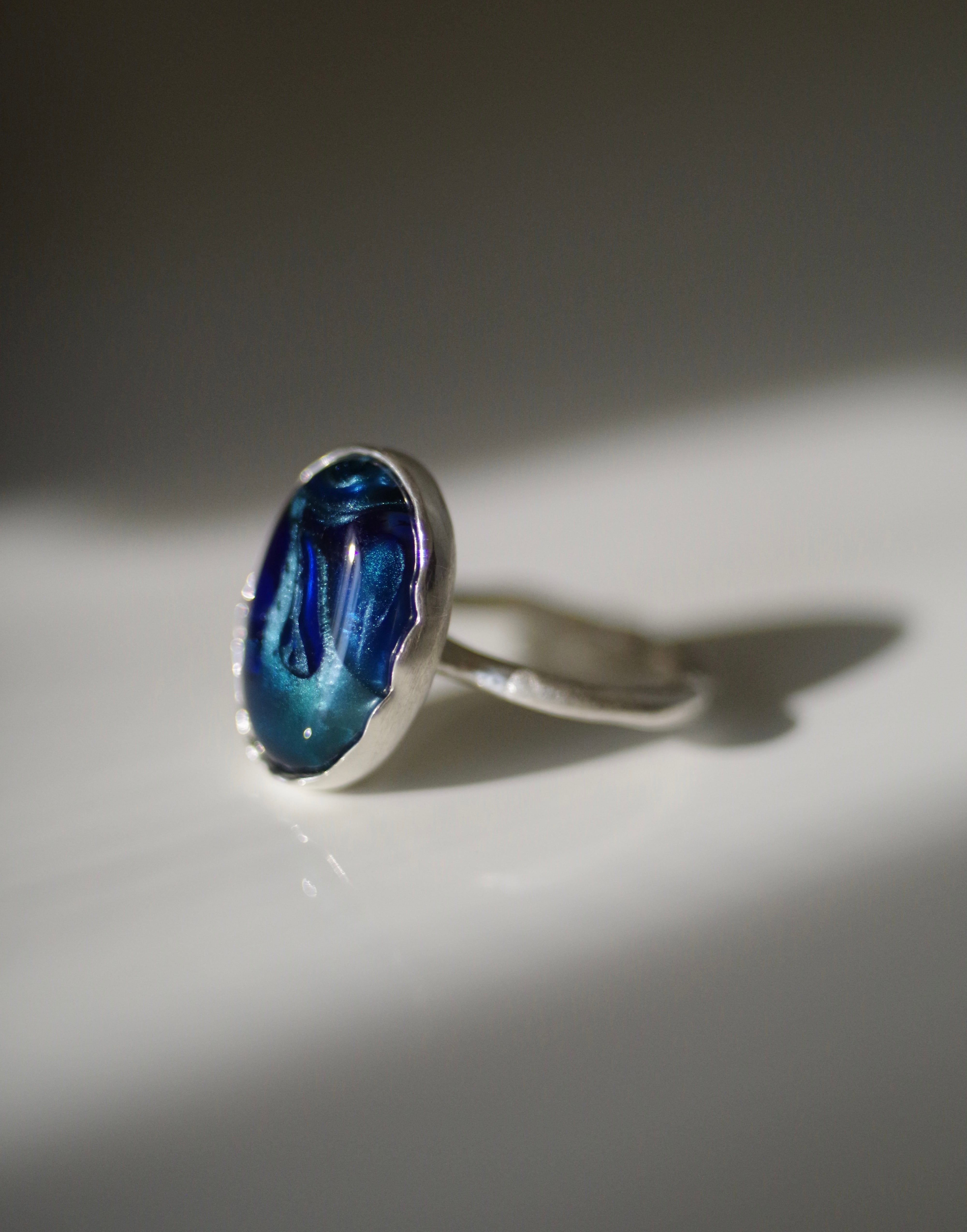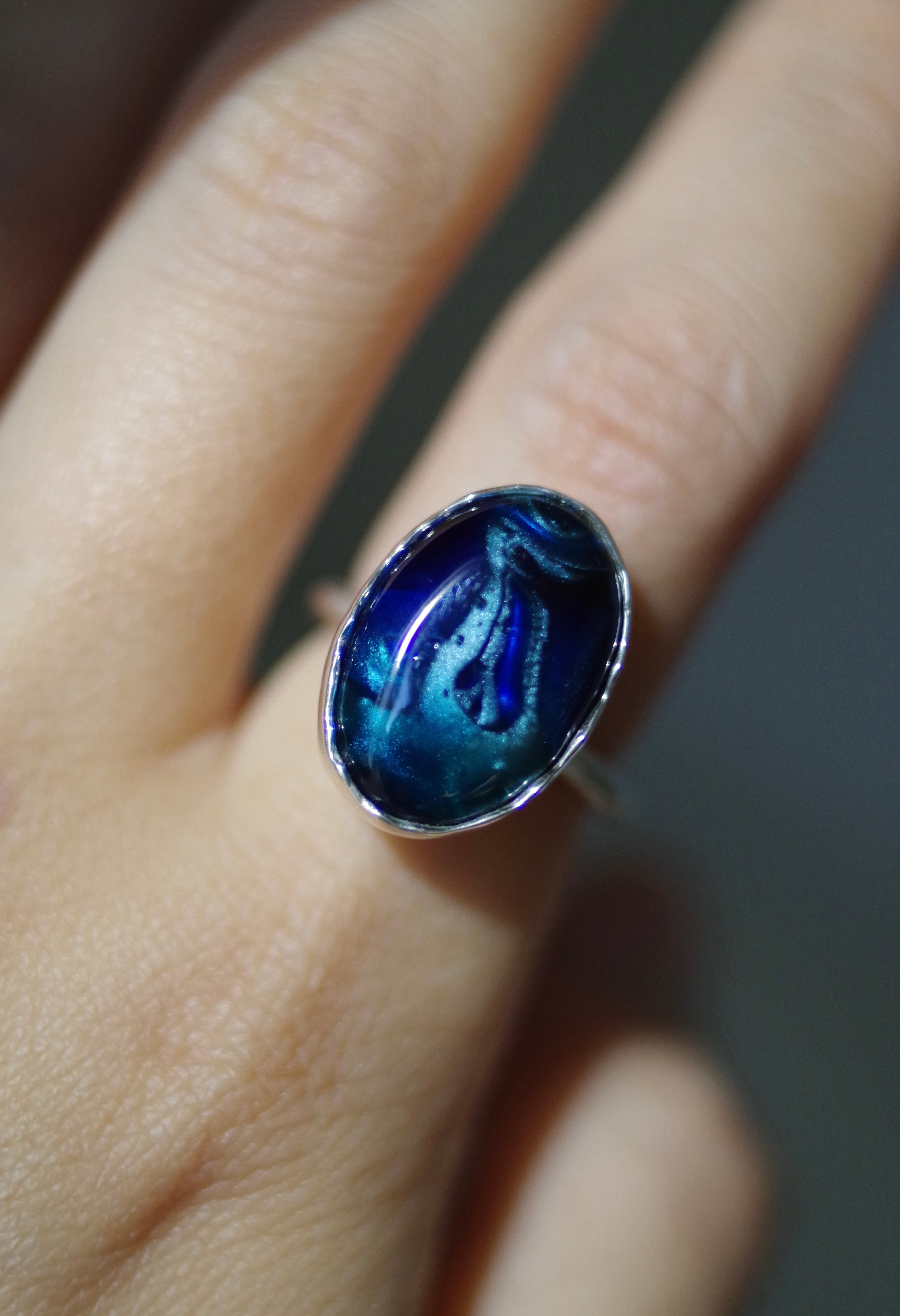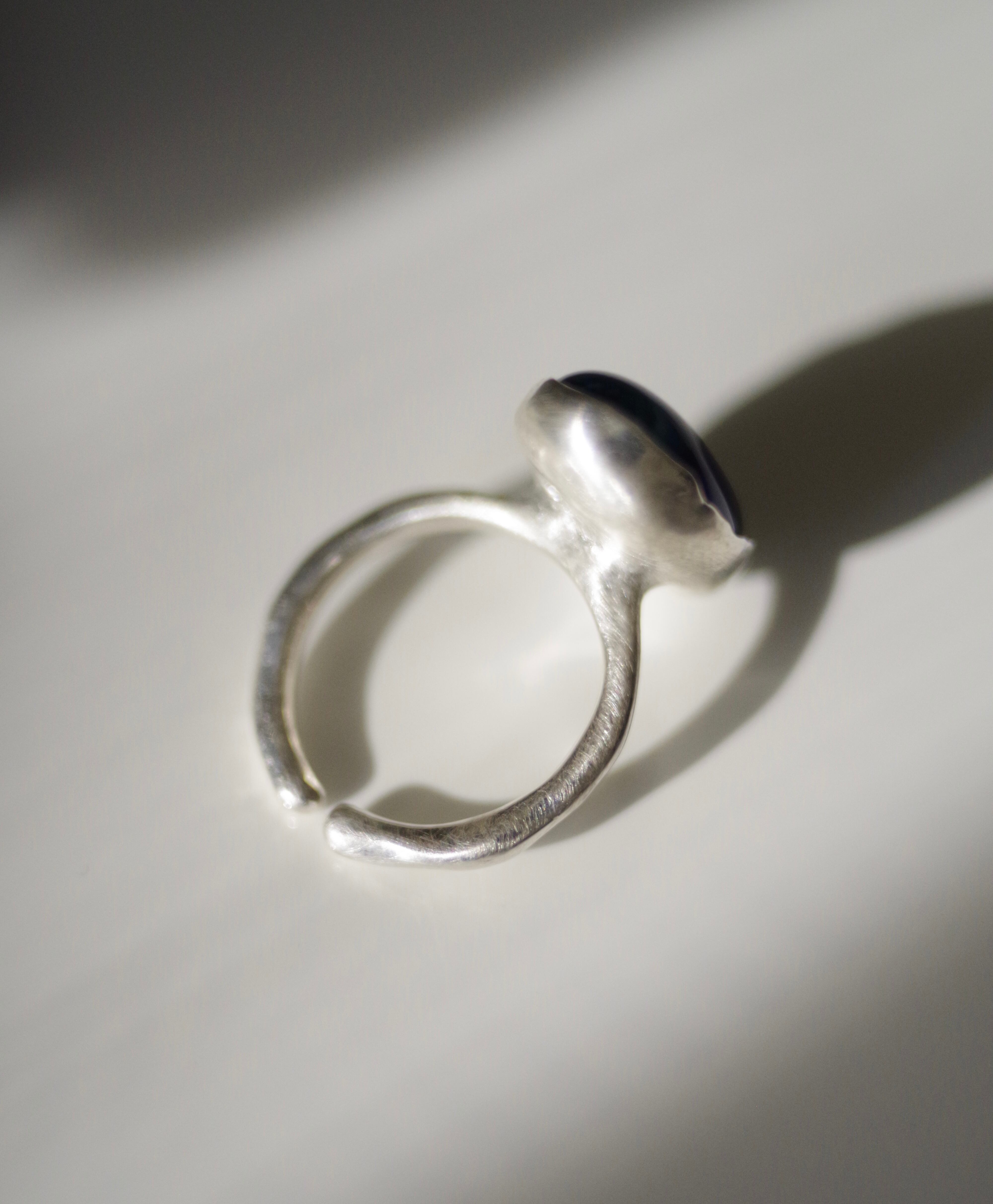変化する前の揺らぎ 8号〜フリーサイズ(こちらで大きくすることは可能です、ご注文の際に希望のサイズをお知らせください) 素材 ボロシリケイトガラス silver925 ガラス石の大きさ 約17mm×11mm×7mm リング幅 約1.8mm