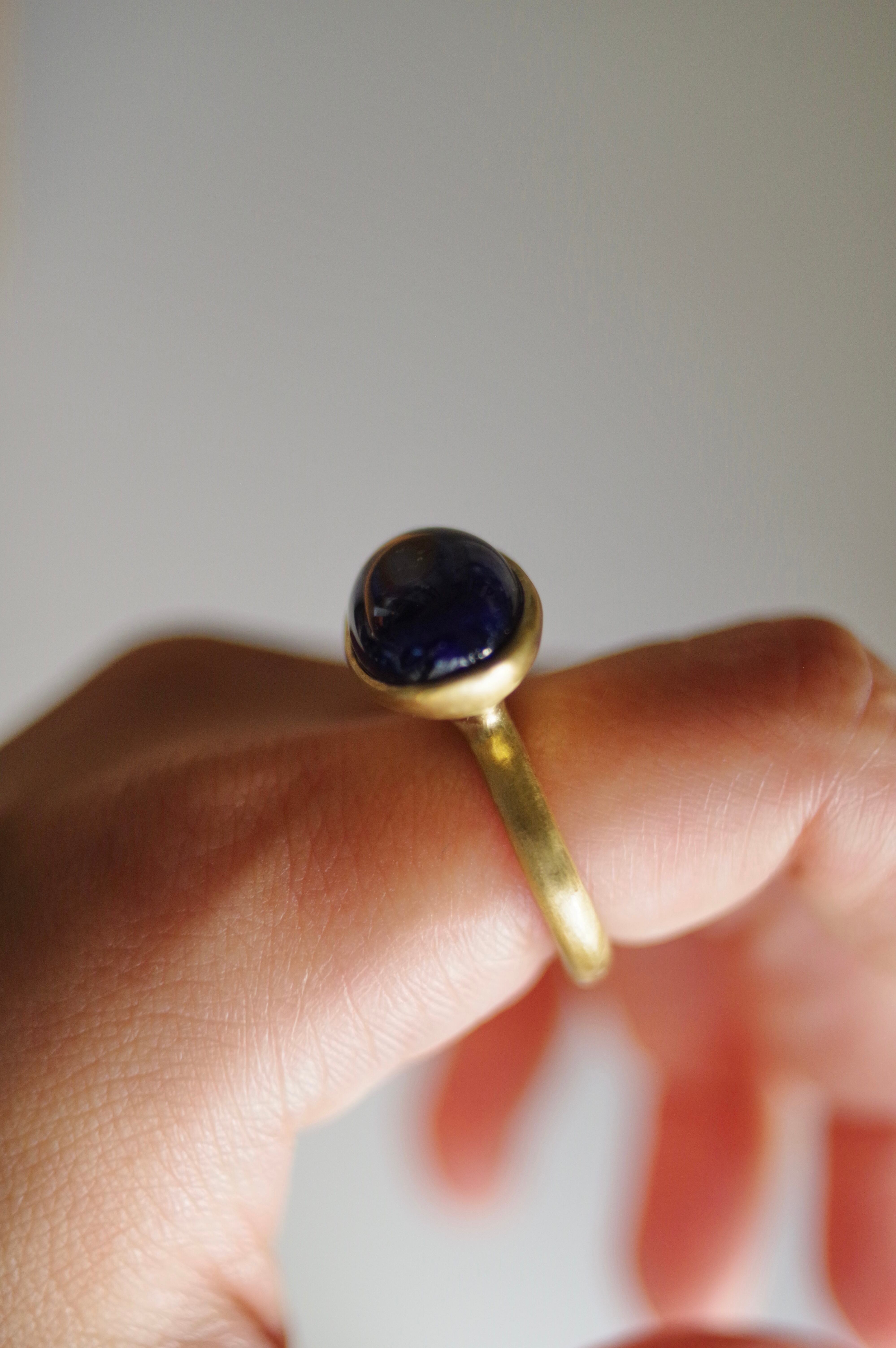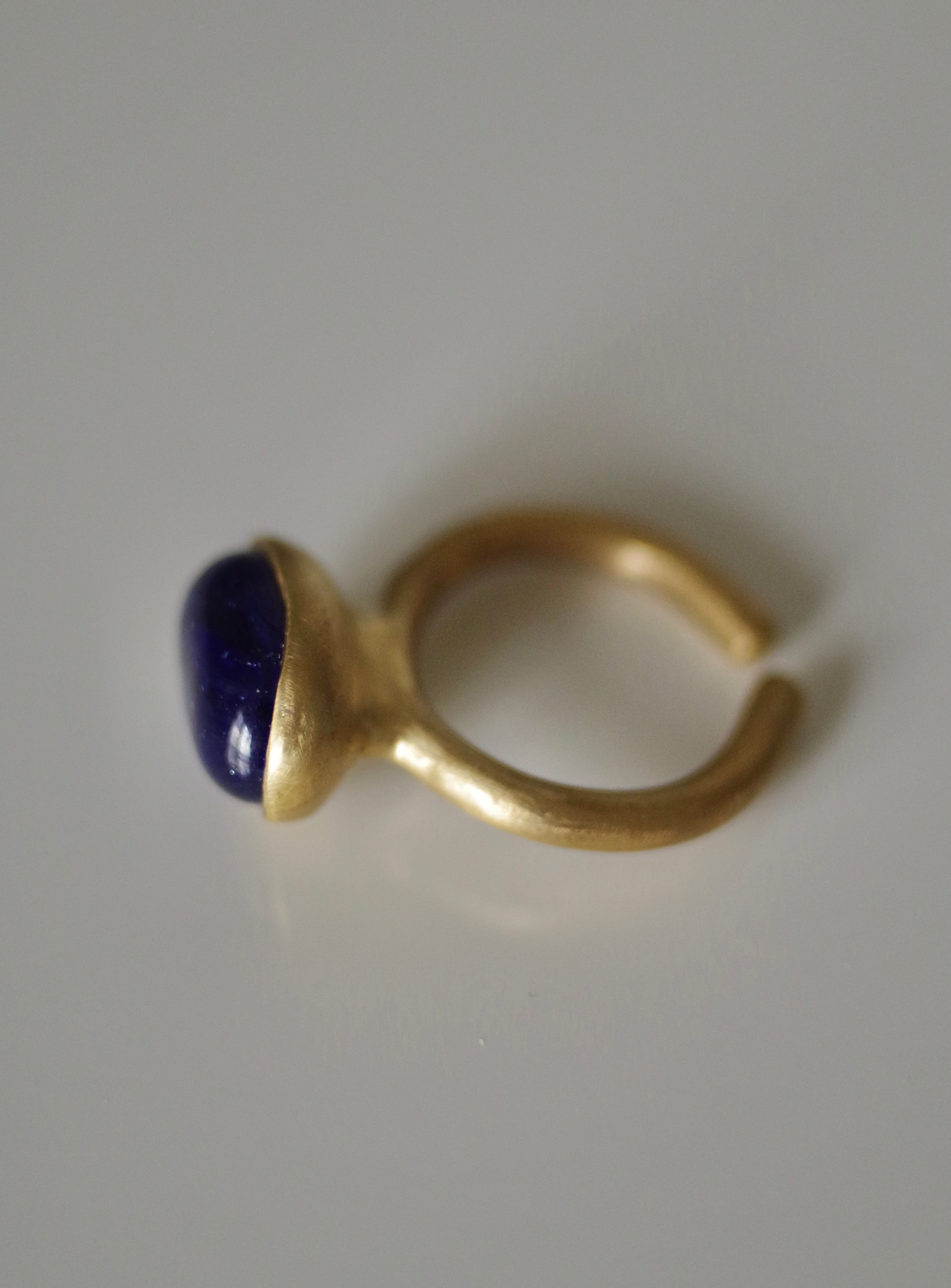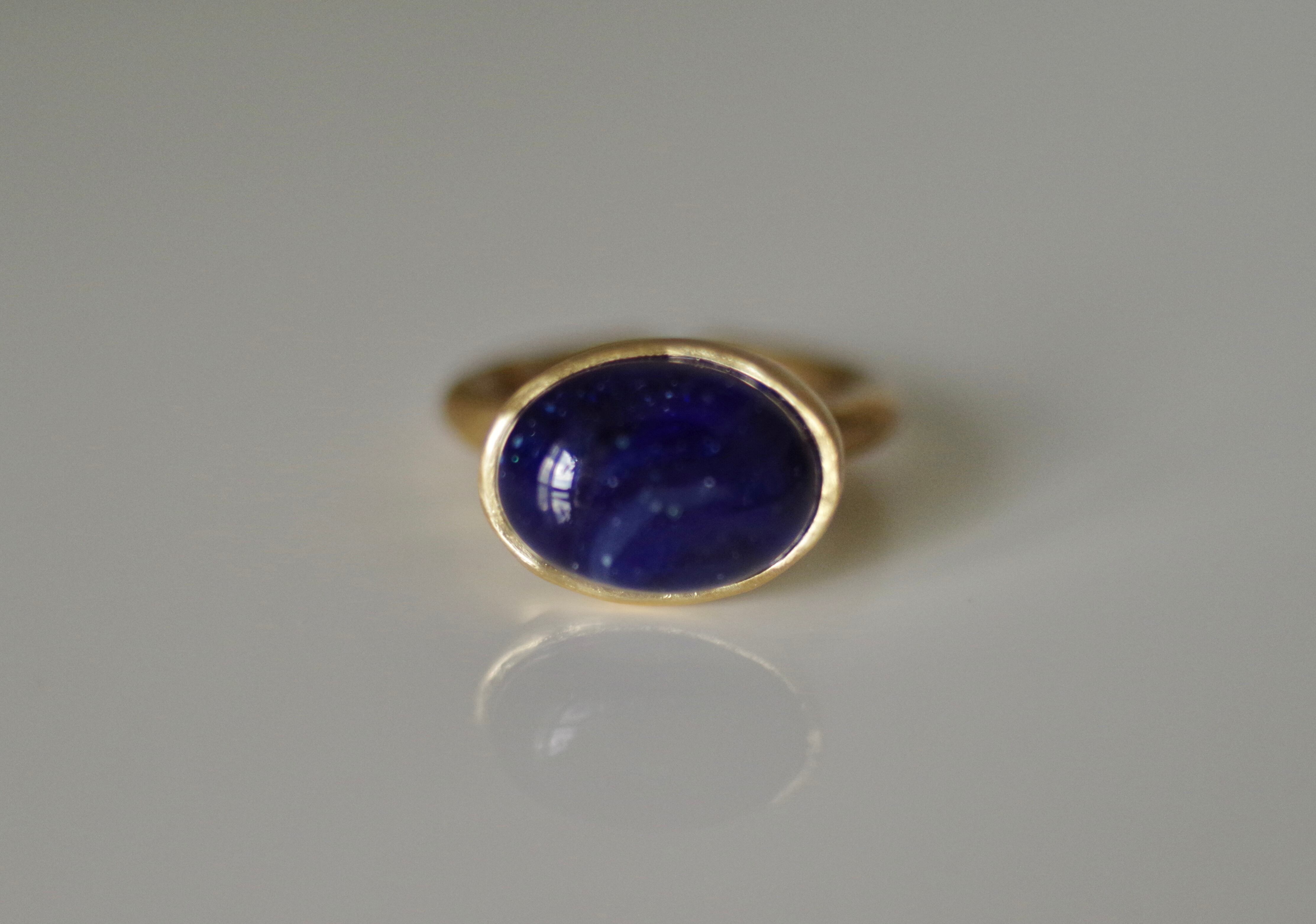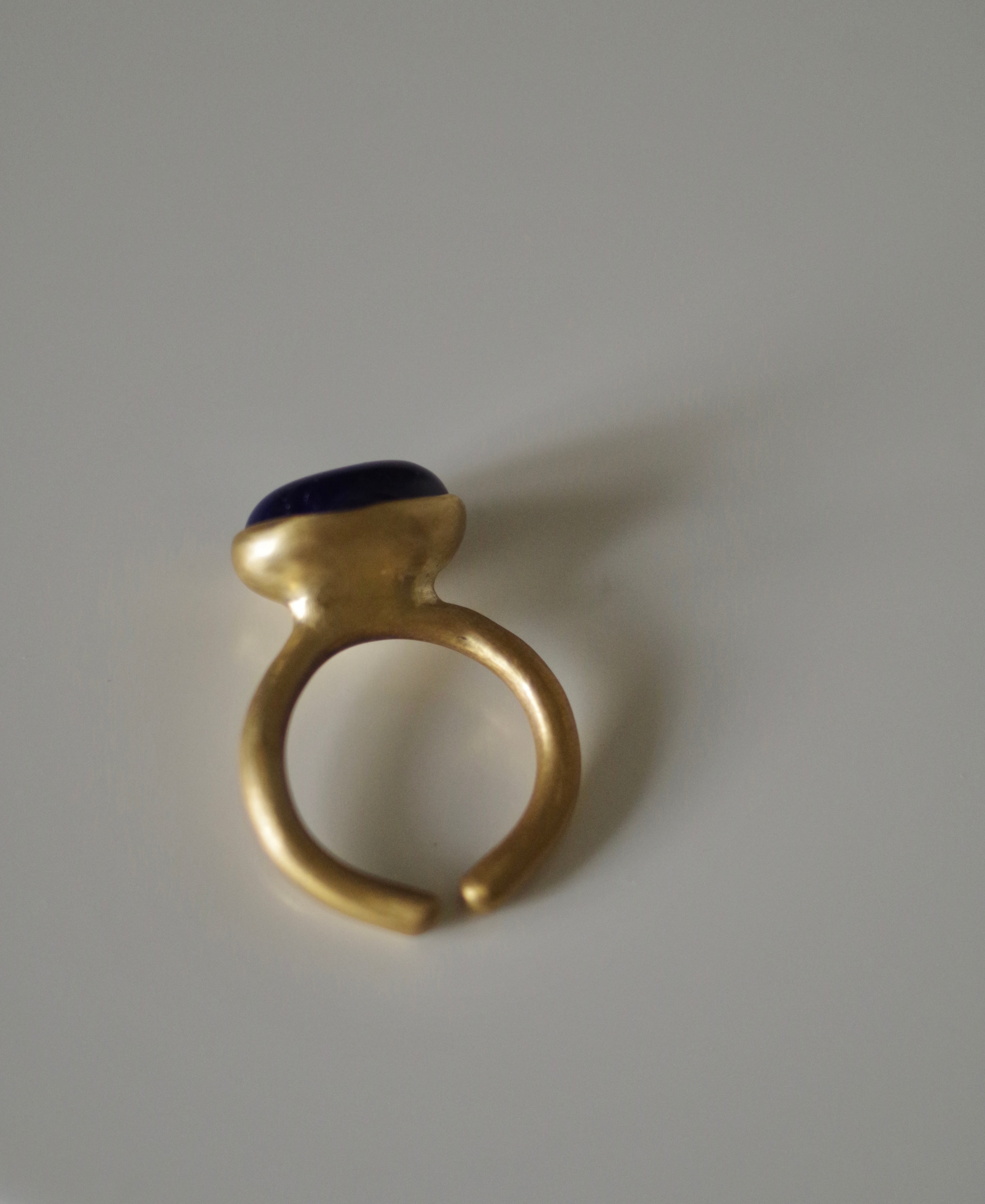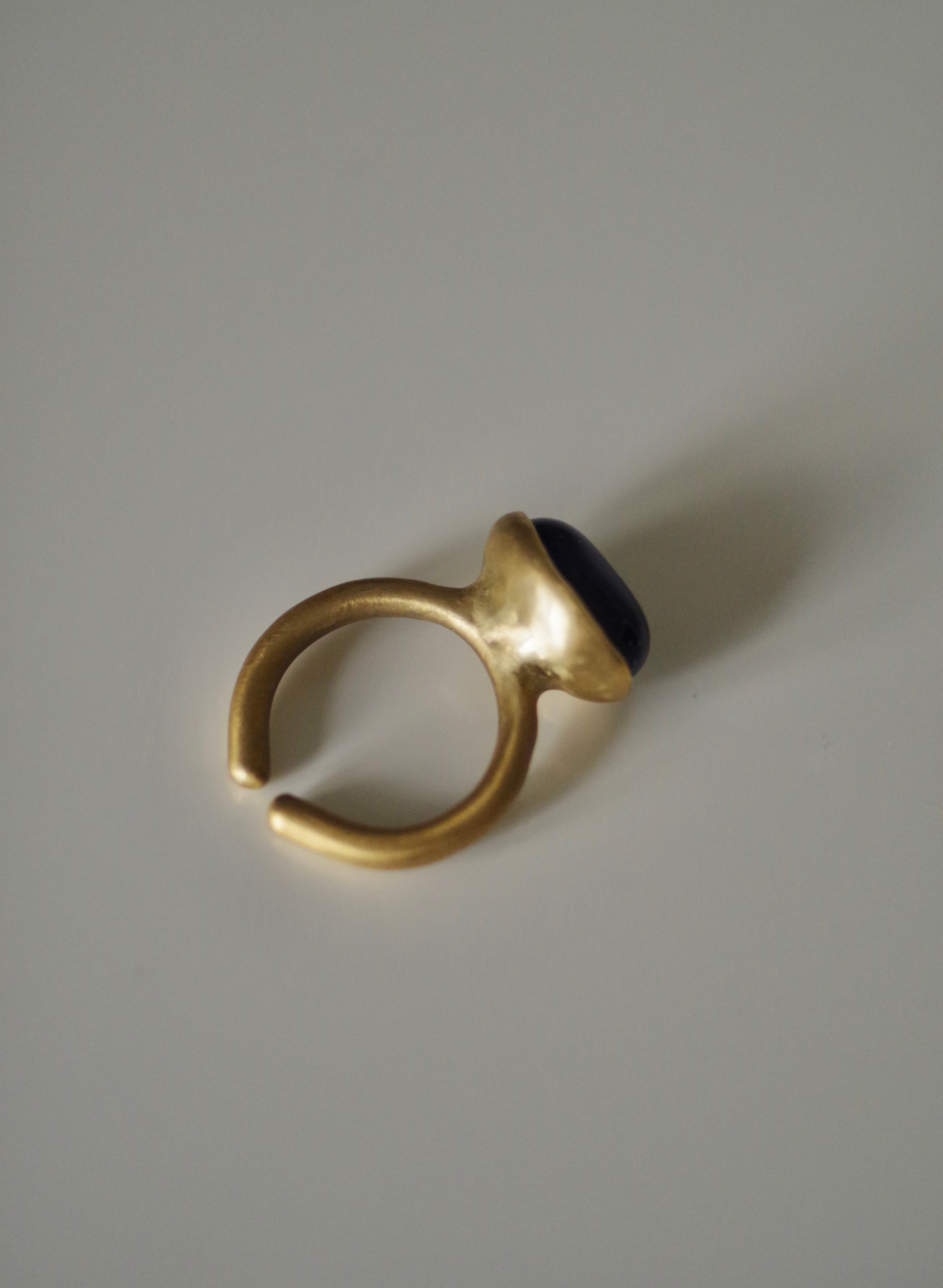 不透明な深い青 10号〜フリーサイズ(こちらで大きくすることは可能です、ご注文の際に希望のサイズをお知らせください) 素材 ボロシリケイトガラス 真鍮 ガラス石の大きさ 約10mm×14mm×8mm リング幅 約3.1mm