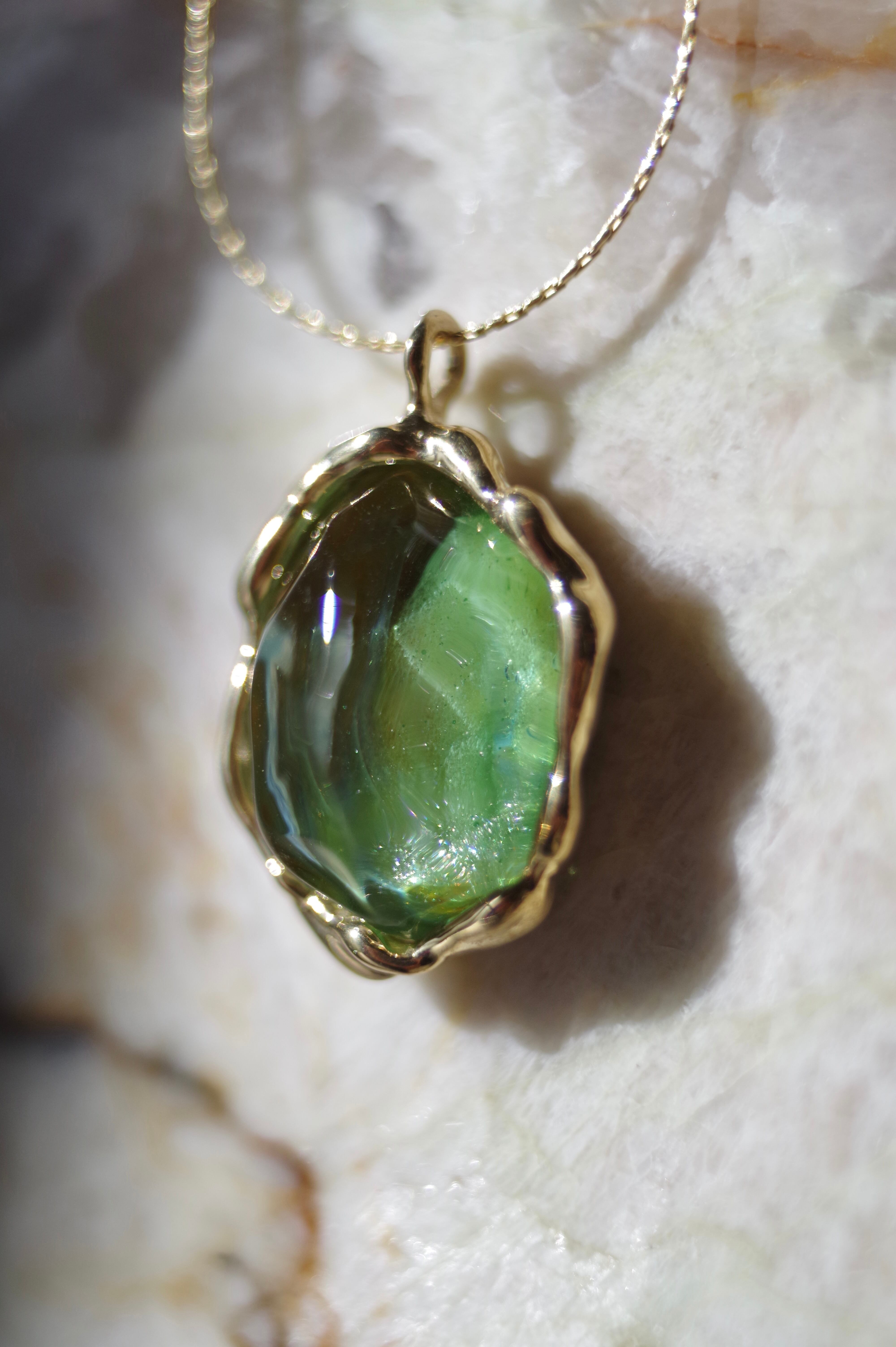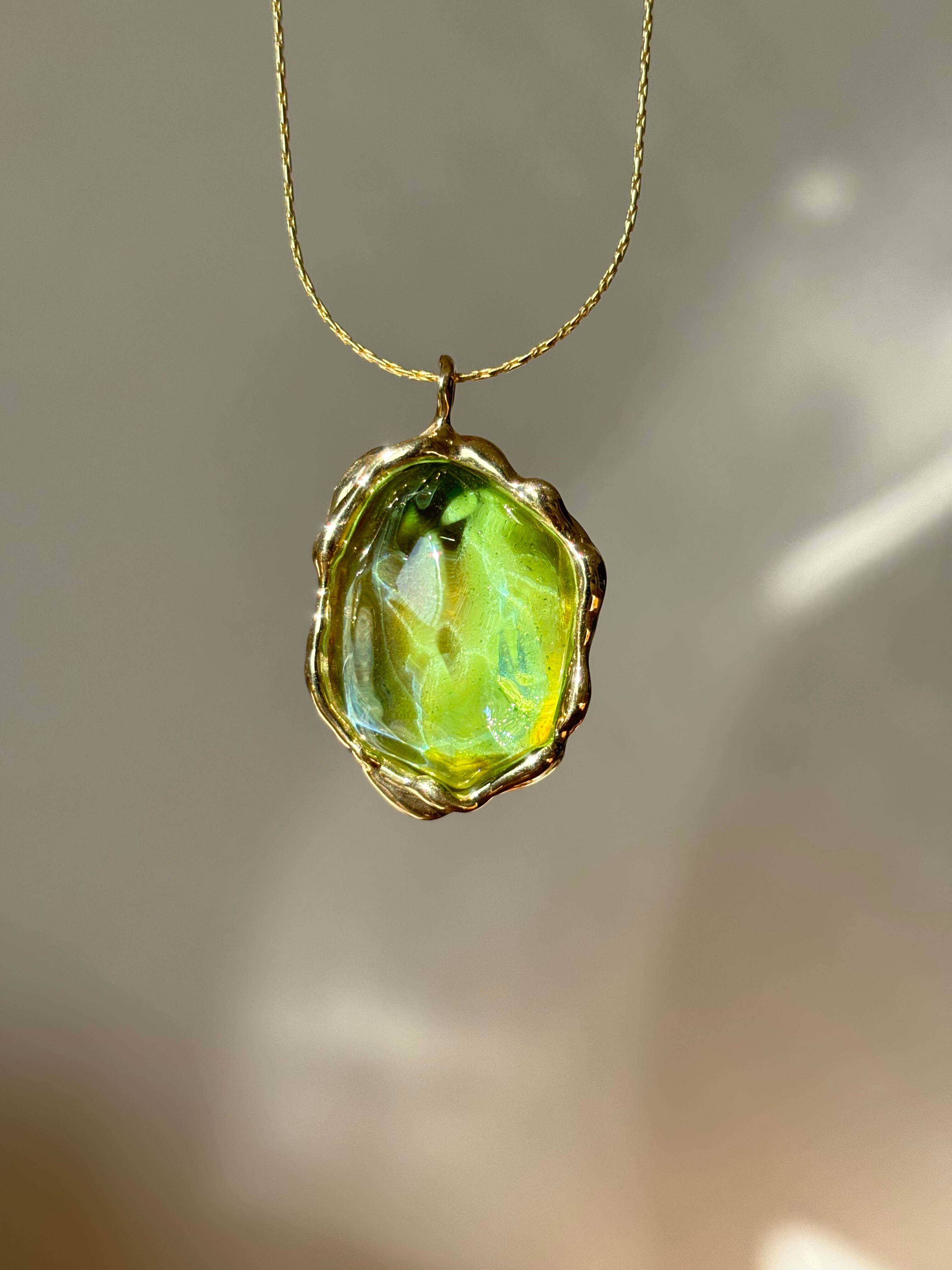 真鍮の鏡に映し出される景色 素材 ボロシリケイトガラス 真鍮 チェーンはsilver925にk18コーティング(50cm) トップの大きさ 約24mm×20mm×11mm