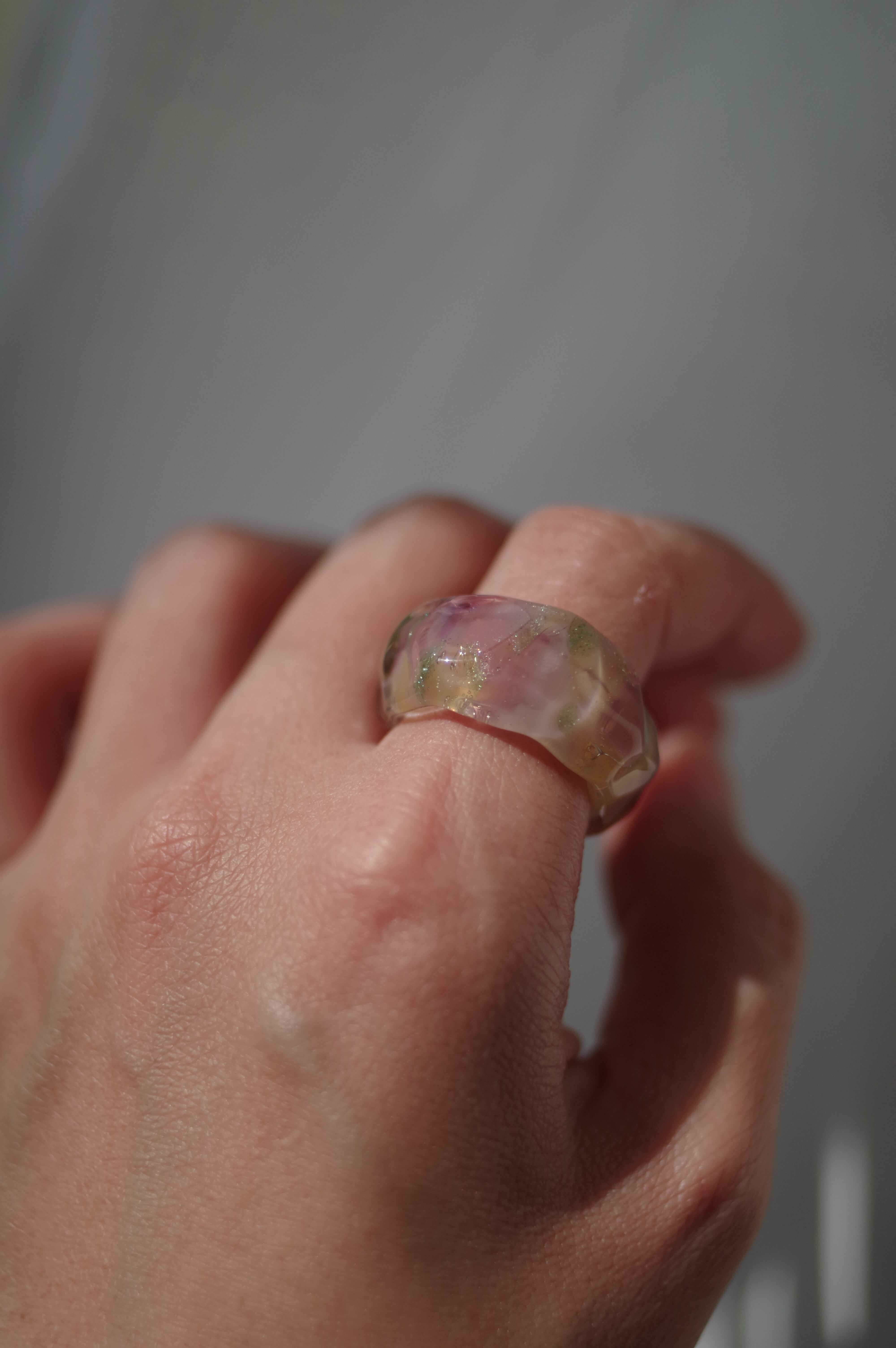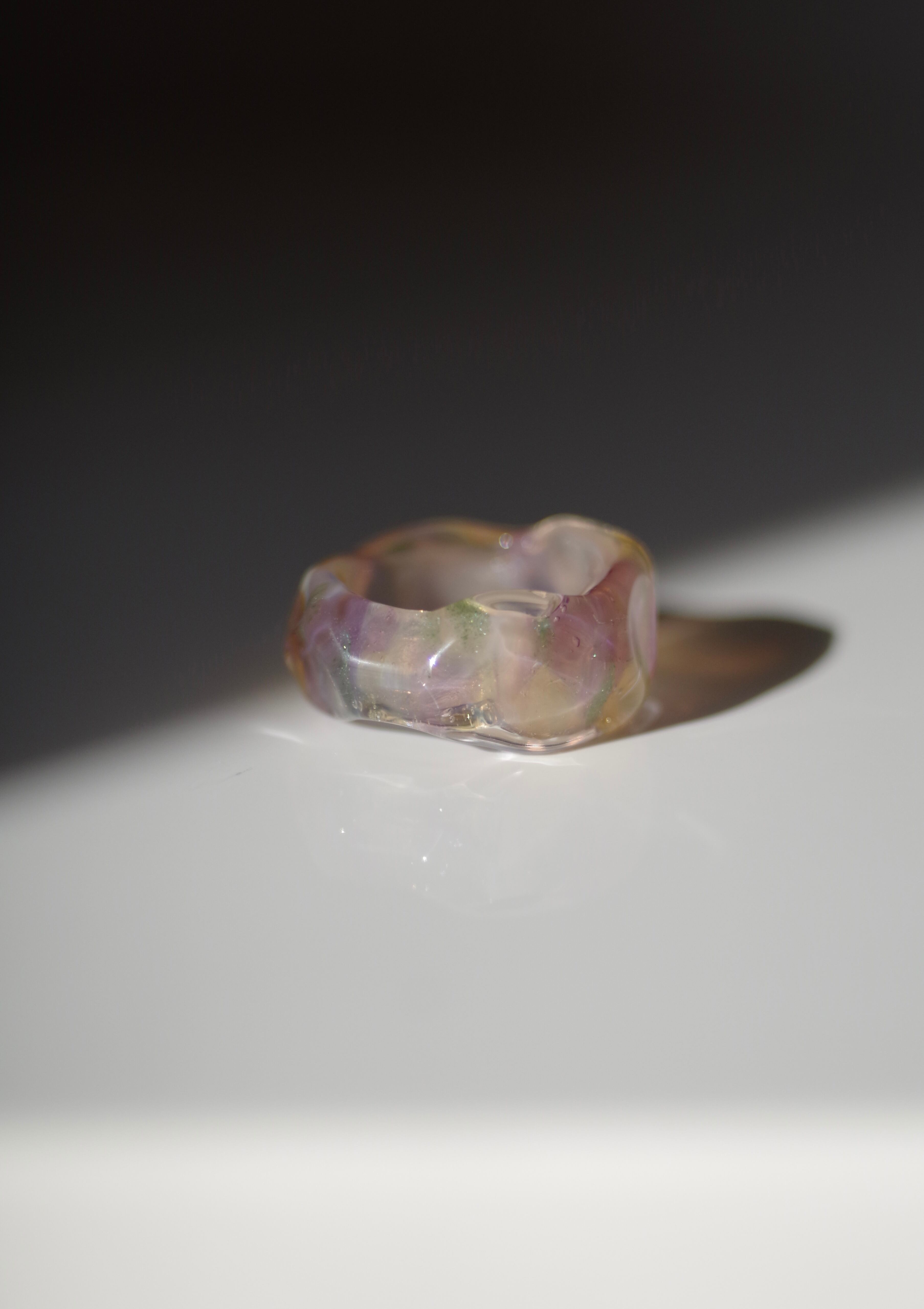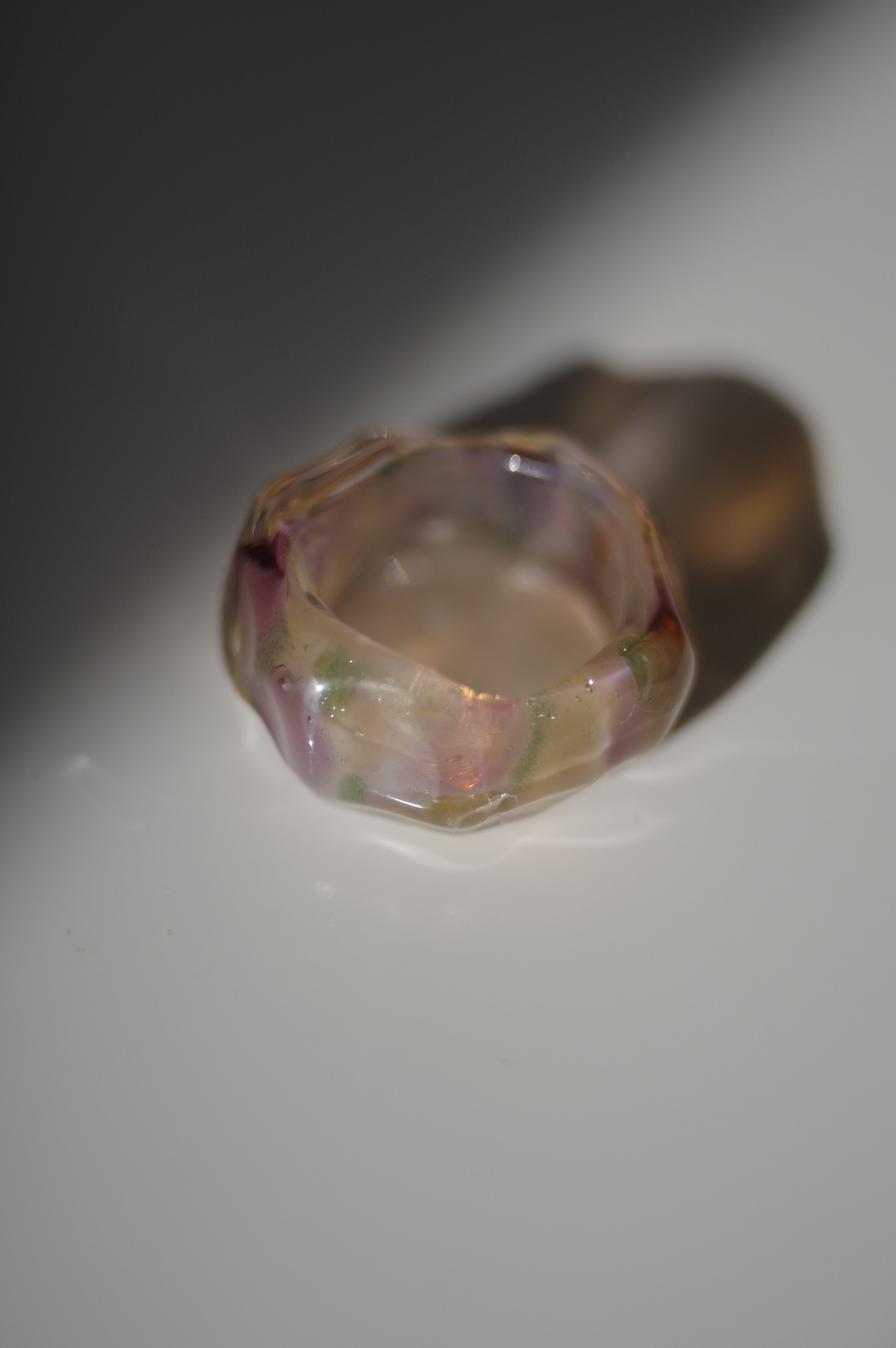 すべてガラスでできた一点物の指輪 素材 ボロシリケイトガラス 13号(サイズは普段着けているものより少し大きい号数をおすすめします)